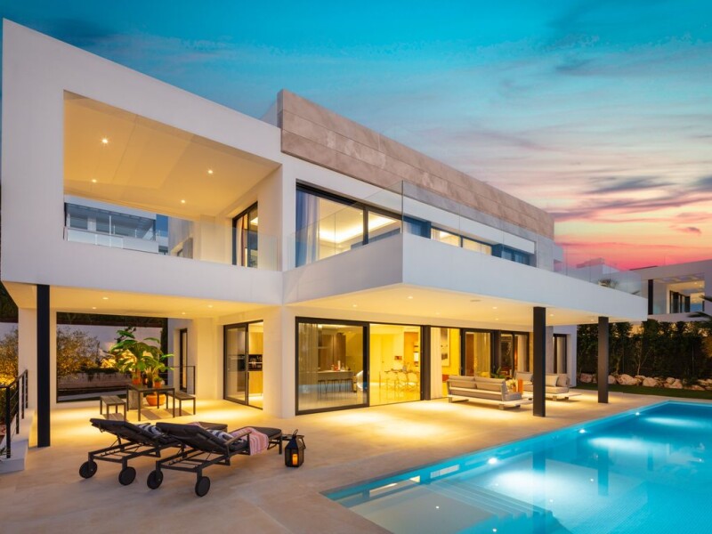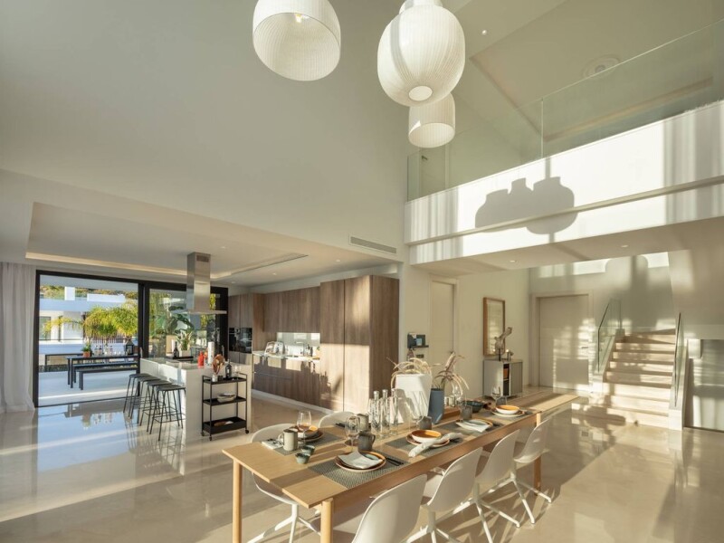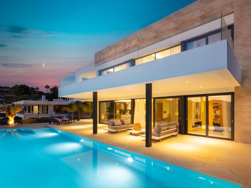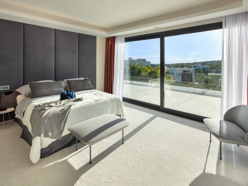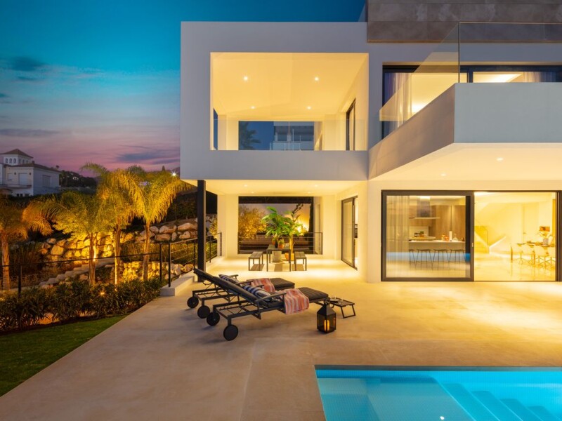 A modern and elegant new build property with views across Nueva Andalucia and to the sea. This villa is set within a sought-after and gated urbanisation, benefiting from 24-hour security, modern architecture and comfortably chic Scandinavian interiors.