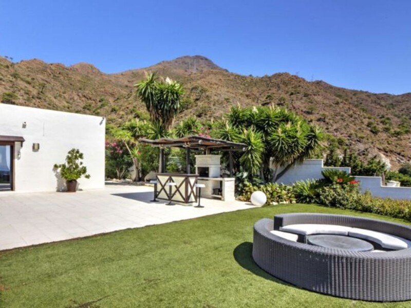 Beautiful villa with panoramic views of contemporary style in the Estepona area, just minutes from Puerto Banus and Marbella. It is a 3,400 m2 plot where a 519m2 villa has been built spread over one floor. In addition to beautiful gardens where you can still build up to 150m2, with a separate pool.