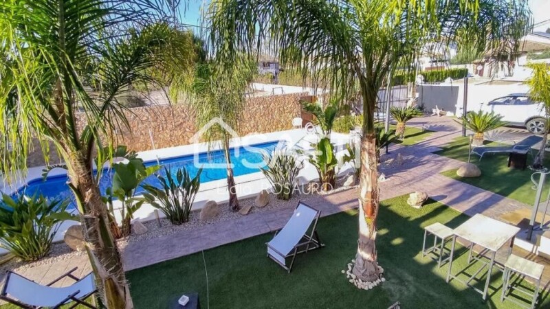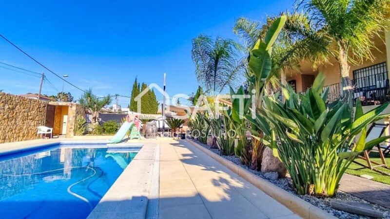 Discover the opportunity to live in a luxurious villa, located in the prestigious Los Conejos urbanization in Molina de Segura. This exclusive property extends over a 1000m2 plot, with a central house surrounded by an idyllic outdoor setting including a welcoming swimming pool at the entrance. The outdoor space offers a parking area, a toilet accessible from the pool, a dining porch and a relaxation area. Upon entering the house, you will be greeted by a charming porch, ideal for enjoying the sunsets, followed by an elegant hall and living room. The house has 9 bedrooms and 5 en-suite bathrooms distributed over two floors. The kitchen is spacious and bright, with access to another porch that offers panoramic views, as well as a pantry and laundry. The ground floor has a living room divided into two rooms and a smaller kitchen, perfect for gatherings with friends and family. You'll also find a large game room to create memorable memories. The house is perfectly equipped for all seasons, with three wood-burning fireplaces, ceiling fans, air conditioning, and an aerothermal system to satisfy all your needs. Don't miss the opportunity to acquire this magnificent property and start a full life in this refuge of tranquility and space.