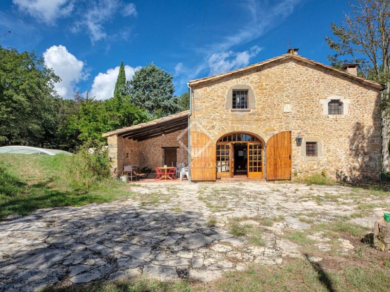 Lucas Fox presents this authentic 19th century country house , located in the idyllic Pla de l'Estany, Girona, in a natural setting. The country house sits on one hectare of private land. The construction combines rustic charm with modern comforts, ideal for those looking for a quiet retreat without sacrificing connectivity. The country house has a comfortable layout on two floors, which includes a large entrance hall with vaulted ceilings, a cosy living room with fireplace, a dining room and a kitchen with pantry. The ground floor also houses a single bedroom with bathroom and a storage room next to a porch that opens onto the extensive grounds. On the first floor, there is a second living room with fireplace, as well as three additional bedrooms and a bathroom. Exterior, there is a swimming pool, a tennis court and a beautiful private oak forest that surrounds the property and offers a quiet and private environment. Among its features, it is worth highlighting that the country house is connected to the public electricity and water supply, has a heating system with diesel oil and an old well that now functions as a cistern. There is also the possibility of expanding the current built surface, which offers great potential for improvement to adapt the country house to the needs and preferences of the new owner. Although the property retains its original charm with stone walls, wooden beams, terracotta floors and vaulted ceilings, it requires renovation to provide it with modern comfort and meet current needs, providing a unique opportunity to personalize every detail. Its location is equally privileged, making it an exceptional option for those who value rural tranquility without moving away from the main points of interest in the area.