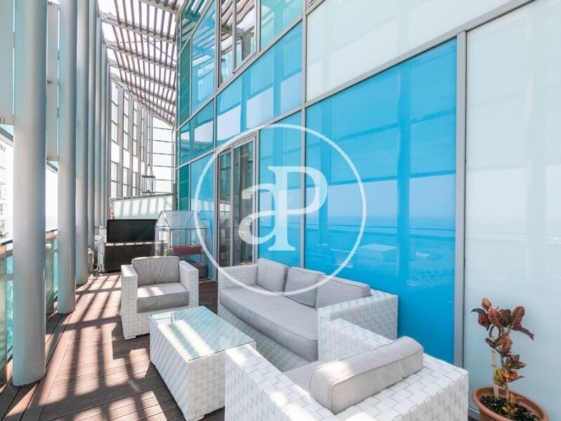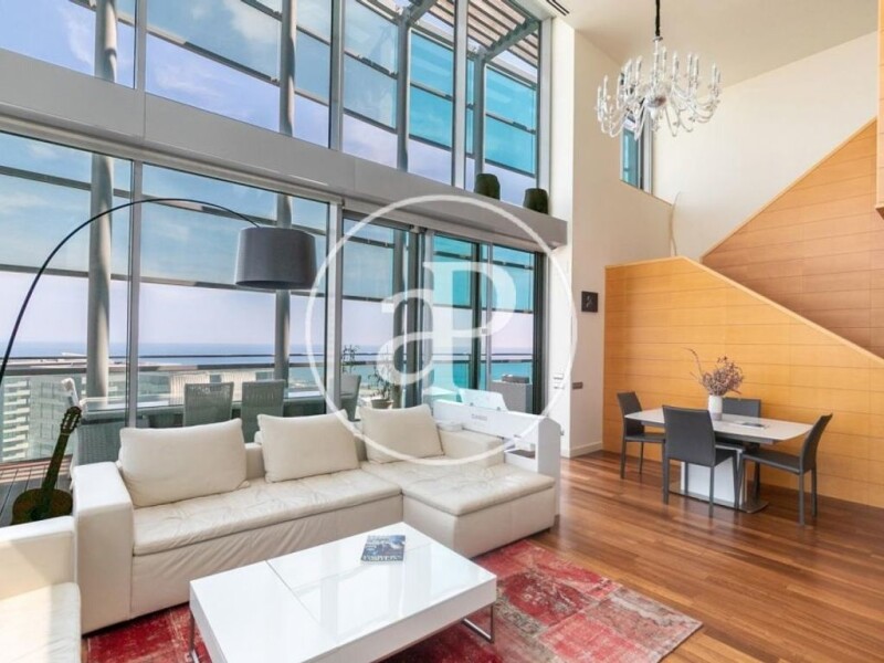 This is an exclusive duplex penthouse in, one of the most exclusive and modern residential complexes in Diagonal Mar. The complex has excellent communal areas such as a swimming pool, garden, gym and paddle tennis courts and has 24-hour surveillance. The property has a surface area of 153sqm plus a 70sqm terrace with a private Jacuzzi and impressive panoramic views of all of Barcelona and the sea. On the main floor there is a courtesy toilet, the bright and airy living room at double height from which there is access to the terrace that surrounds the flat with its fantastic swimming pool to relax overlooking the sea, a bedroom with its bathroom en suite and a fully equipped kitchen with entrance from the dining room. On the upper floor there are two bright double bedrooms and a bathroom with shower tray. There is also the laundry room. The apartment is finished to a high standard and is delivered furnished. It has air conditioning and heating. Reinforced door. The price includes a parking space and storage room in the same property.