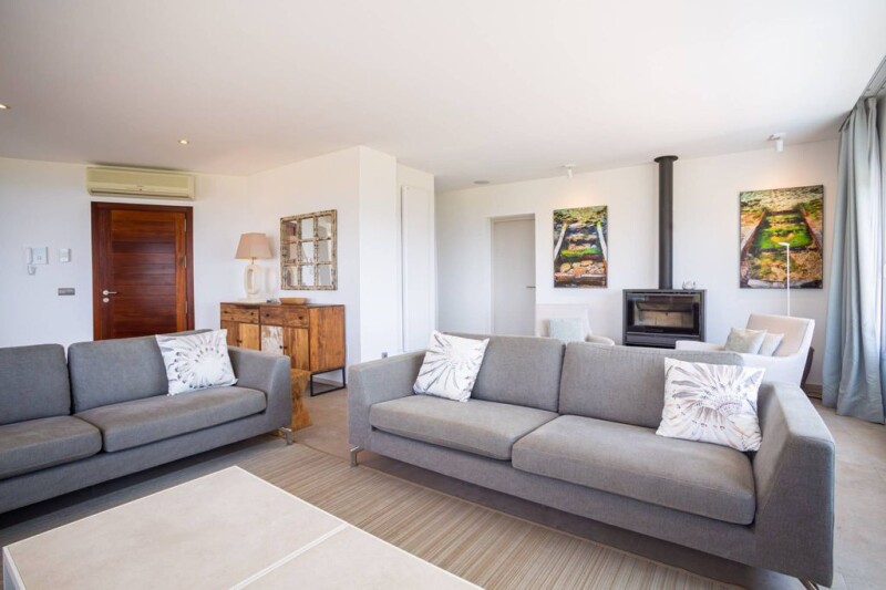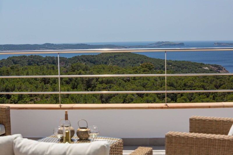 Stylish and completely renovated villa in Cala Salada, one of the most beautiful beaches in Ibiza. It's in a quiet area surrounded by nature, with cozy and lovely interiors. The villa has lots of outdoor spaces and chill-out areas with amazing views of the sea, sunsets and the forest-covered hills. The house has different levels, giving each area its own purpose and ensuring privacy for everyone. It's great for big groups and families who want to be together and have everything they need. Cala Salada is a small sandy beach surrounded by pine trees, and it's popular with locals and private boat owners because it's not crowded with tourists. The water is clear and shallow, perfect for swimming, and there's soft sand on the seabed. It's only a km away from the villa, close to another beach called Cala Saladeta. You can drive to the shops and supermarkets in San Antonio in just 5 minutes. The airport is about 25 to 30 minutes away from the villa.