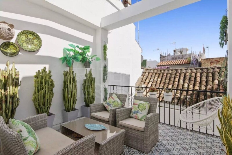 Beautiful Townhouse located in Estepona Old Town This exceptional residence offers a rare opportunity to acquire one of the finest homes in Estepona’s charming Old Town. Located on a picturesque pedestrian street, the property has been recently renovated to blend modern elegance with authentic Andalusian character. It includes an independent guest apartment and a private garage, combining luxury with convenience. The main residence features a stylish, fully equipped kitchen with built-in appliances and a dining area for up to eight people. The kitchen flows into the spacious living area, which opens onto a private open-air patio. This level also includes a full bathroom, a laundry room, and access to the garage with space for one vehicle. On the middle floor, there are two generously sized bedrooms, each with its own balcony—one overlooking the vibrant Old Town street, and the other facing the peaceful inner patio. A beautifully updated bathroom serves this level. The top floor is ideal for entertaining, with a summer bar/kitchen and two solariums for sunbathing. One solarium enjoys morning sun, while the other basks in the afternoon light, making it a perfect spot for enjoying the outdoors. The property also includes a fully equipped guest apartment with its own kitchen, bathroom, and sleeping area. With a private street entrance and access to the main house via the inner patio, it offers privacy for guests or the potential for rental income. Located just a five-minute walk from the beach and steps from Estepona’s vibrant town centre, this home offers the perfect balance of luxury and convenience. The port, golf courses, and shopping centres are also nearby, and Malaga Airport is just an hour away. This is an exceptional property in one of Estepona’s most desirable areas.