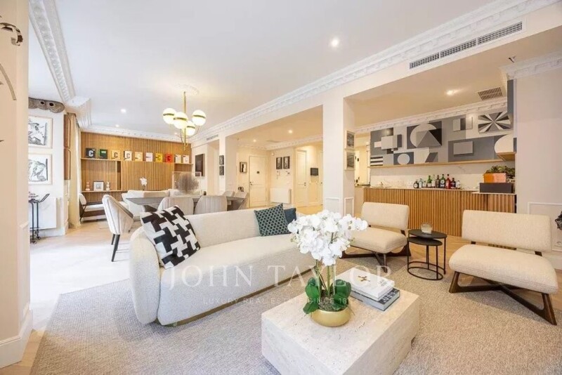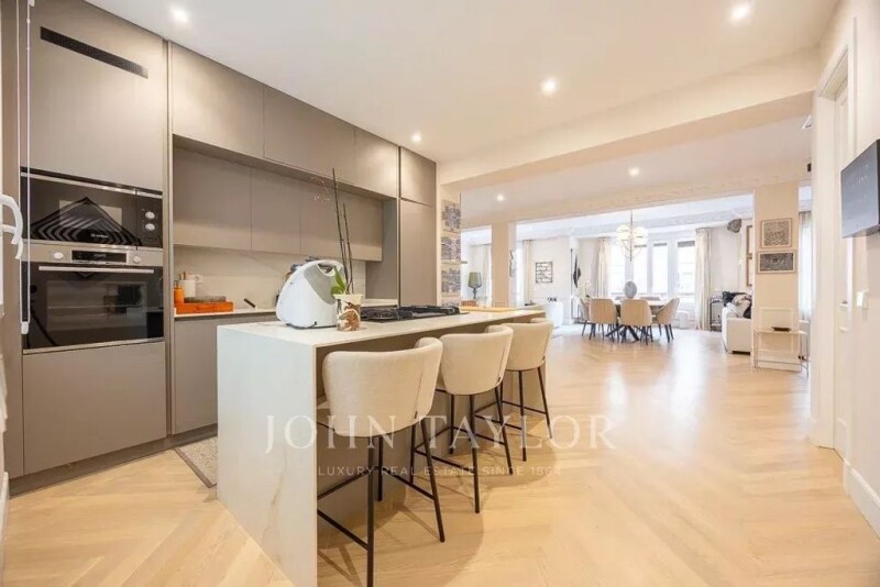 In one of the best areas of Salamanca we find this fabulous property, recently renovated with great quality materials. It is located on the fourth floor of a beautiful classic building with a representative entrance. With a double east-west orientation, it offers great natural light throughout the day. When entering the property and find a large social area, with two living areas, a dining room and an open, fully equipped kitchen. In this area we also find a practical guest toilet and a separate laundry room. The private has 4 large bedrooms, all with en suite bathrooms, that overlook a bright and spacious block patio facing west. The property has ducted air conditioning in all rooms, central heating and individual hot water. The building has porter service and the property has a storage room. Without a doubt, a spectacular family property in one of the best areas of the prestigious Salamanca district. The furniture is not included in the price.
