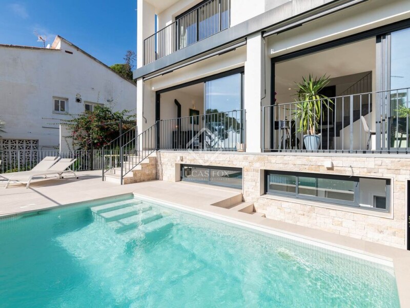 Lucas Fox presents this spectacular, recently built luxury home in the prestigious area of Poal, with top quality finishes. The property boasts an elegant and sophisticated style, in every detail. It has panoramic views of the Mediterranean Sea and large windows that allow in abundant natural light, creating a warm and welcoming atmosphere. The property is spread over several floors. On the main floor , we find a modern living room that connects with the open kitchen, equipped with state-of-the-art appliances and high-end materials. Next, there is an exterior dining room and the interior terrace with direct access to the pool and chill-out area, to enjoy sunny days. The night area includes an impressive main bedroom with a private bathroom, with high-quality finishes and designer taps. In addition, there is a generous bedroom, ideal for children, which can be divided into two individual rooms, according to your needs. The views from each room are exceptional to the sea. On the ground floor, there is a luxurious loft divided into two independent areas. On the left side, there is a spacious living room with pre-installation to equip an additional kitchen, ideal as a space for guests, and a full bathroom . On the right side of the loft, there is a fully furnished living room , a cozy bedroom and an equipped kitchen. In addition, there is an additional room prepared to install a second bathroom. The property has been designed with sustainability and energy efficiency in mind. There is space to install solar panels on the solarium, optimising energy consumption and reducing costs in the long term. In addition, it has a private parking space with a charger for electric cars. Located just a few minutes from the beach, in one of the most sought-after areas of Castelldefels, with all modern amenities, in a stunning natural setting. Contact us for more information or to schedule a visit.