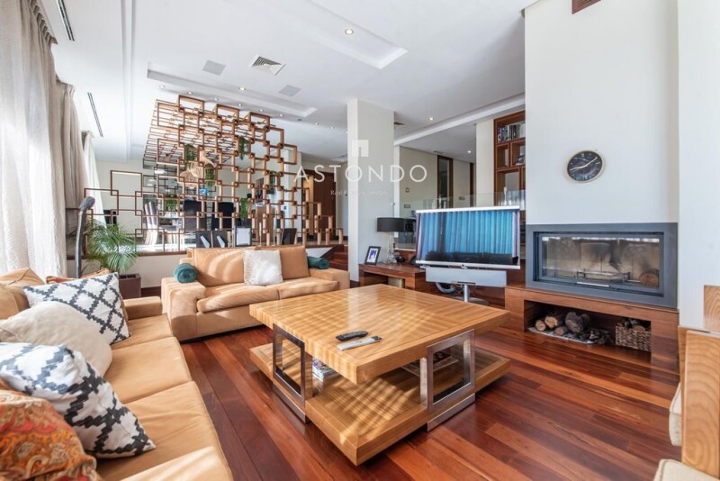 Stunning modern design home. Built with excellent quality. 1,150m2 built, distributed over 4 floors with lift, on a 1285m2 plot. In the highest area of the Conde Orgaz Park, which gives it unbeatable views. We enter the house and find a double-height entrance hall in which a circular wooden column of the same tone as the carpentry and skirting boards stands out. On this floor there is also a guest toilet, an office (18m2). The large living room (90m2) with views and access to the garden. The large kitchen (31m2) has an office, is connected to the dining room. It gives access to the service area made up of two rooms (10m2 - 8m2), a bathroom and service access. When we go up to the first floor, by the stairs or by the lift, we reach a wide corridor that overlooks the entrance hall and that distributes us to the four large bedrooms. Two of the bedrooms (30m2 – 15m2), with en-suite bathroom and dressing room (12m2), both with access to a private terrace (30m2 – 27m2) to enjoy the outdoors and the views. The other two bedrooms (18m2) share a bathroom. The master bedroom, in turn, has a jacuzzi. On the second floor there are two bedrooms (17m2), two bathrooms (4m2 – 15m2) and an intimate living room (15m2) that can be used for different purposes such as a TV room, games room, etc. All these rooms have access to a terrace (137m2). The basement floor consists of: cellar, garage (166m2) for 6 cars with three large skylights that provide natural light, a service room with its bathroom, ironing and laundry room (15m2), cellar, pantry (5m2), cold storage room, boiler room and elevator machine room, living room, gym (25m2) from which you can access the outdoor pool, sauna (10m2), Turkish bath, Swedish shower, storage room and open-plan area (142m2). From the living room we access the garden through a porch and find a beautiful pool with automatic heating and spa, barbecue and children's games. It is worth highlighting the spaciousness, luminosity of its rooms and its good distribution, this makes it a very cozy home, ideal to enjoy its spaces, interior and exterior, with absolute privacy. The house has: alarm, security booth, central vacuum, solar panels, underfloor heating, air conditioning, electric carpentry. Conde Orgaz Park is one of the most exclusive areas of Madrid, with a permanent security system. Within the park are some of the best national and international schools (Colegio San José del Parque, Liceo Francés, etc.) It is close to shopping centers such as Arturo Soria Plaza, the prestigious MD Anderson Center clinics, Hospital Nuestra Señora de América and Clínica Universitaria de Navarra, supermarkets, gyms, pharmacies, etc. It also has very good direct access to the Barcelona highway, M-30 and M-40, and is just a few minutes from Adolfo Suarez Airport. Call us and visit!.