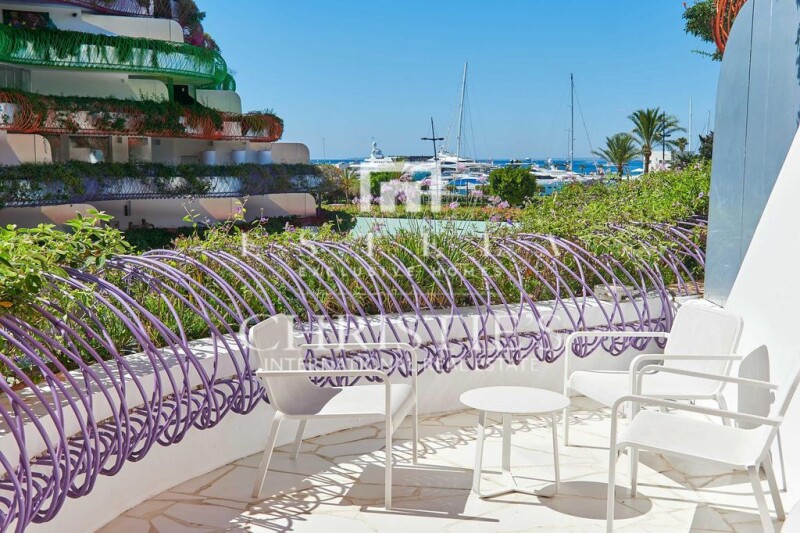 Designed by architect Jean Nouvel, it offers a unique living experience with panoramic views of the old town of Ibiza, Formentera and the sea. The luxury flats designed and individually finished are unique. The building has the balconies of different colors and that is what makes it so original. Las Boas building has beautiful gardens which surround the building with a lake-size swimming pool. It also has an underground garage, two saunas and a gym. All the apartments have integrated air conditioning. It is a gated community with 24 hr. security and cameras. The price of this flat includes an I-Pad to control the domotics, has 115 m2 with 2 bedrooms and 2 bathrooms, a beautiful kitchen, a living room and a spacious terrace.