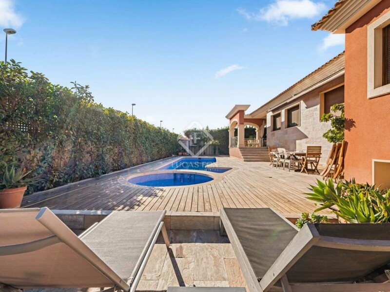 This stunning premium villa is situated in the highly desirable La Font - Playa Muchavista area of El Campello. Boasting an impressive six bedrooms, this detached villa offers the all the benefits of premium living. Upon entering the villa, you are greeted by a sense of modern sophistication and elegance. The interior features amenities like: automated AC system that ensures optimal comfort throughout the year, floor heating that provides a cosy ambiance on colder days, while the fireplace adds a touch of warmth and charm to the living spaces. As an eco-friendly residence, this villa includes solar panels, harnessing the power of the sun to generate energy. The expansive outdoor space is one of the highlights of the property, showcasing a large pool with a jacuzzi area, perfect for relaxation and enjoyment. An inviting barbecue area is perfect for entertaining friends and family, allowing for memorable gatherings and outdoor dining experiences. As well, the main terrace is very well connected with the kitchen and the living room area, being one of the favourite areas of the villa both during the summer and the colder seasons as well. The villa also offers a lower floor dedicated to leisure and entertainment, featuring a billiard area and more. With a double garage, there is ample space to securely park vehicles. The garden of this property is a true oasis, adorned with lush landscaping and boasting an array of fruit trees. This delightful setting offers privacy and tranquility in a serene and peaceful environment. Located in a lovely community, this villa provides a high level of security and safety. Furthermore, its proximity to the sea allows for easy access to beautiful beaches and breathtaking coastal views. Families will appreciate the close proximity to international schools, ensuring quality education for children. The nearby shopping centre offers a wide range of amenities, making daily errands and leisure activities incredibly convenient. Overall, this villa combines luxurious features with an ideal location, creating a truly exceptional living experience. Get in contact with us today to arrange a viewing.