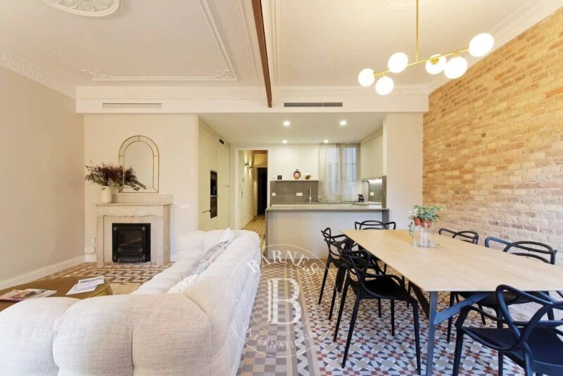 We are delighted to present this magnificent apartment located in the heart of Barcelona, where historical elegance and contemporary design blend perfectly. Recently renovated to preserve the building's original features, this property offers a unique and sophisticated ambiance. The apartment retains original details such as the exquisite Nolla mosaic floors, adding character and a touch of distinction to every room. This is complemented by a comprehensive renovation featuring top-quality materials and modern finishes. The property stands out for its exceptional brightness, thanks to its large windows and excellent orientation. The living-dining area, with an open kitchen, is a spacious and welcoming space with direct access to a balcony offering views of the city. The night area includes three bedrooms designed for maximum comfort. Two of them have en-suite bathrooms, while the third is located next to a guest bathroom. The master suite is a true private oasis with exclusive access to a terrace, perfect for relaxing outdoors. This property is ideal for those seeking an elegant, comfortable home full of history in an unbeatable location. Don’t hesitate to visit and discover the charm of living in the center of Barcelona!.