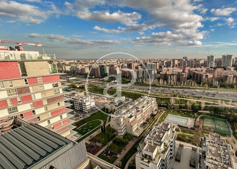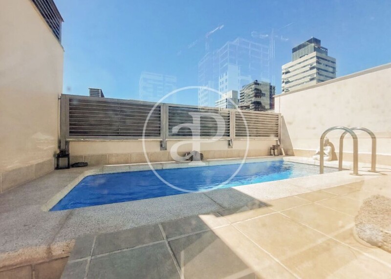 Discover this incredible three-level penthouse that combines spaciousness, luxury and comfort in a single space. With an area of 218 m² according to cadastre, this house offers bright rooms, large terraces and a spectacular private pool to enjoy unique moments. Spaces designed for comfort. Upon accessing the main floor, we are greeted by an elegant lobby that leads to a spacious living room of 27 m2 with large windows with access to a lovely terrace of 9 m2 that brings natural light and spaciousness to the environment. The kitchen, modern and fully equipped, has a separate laundry area. In addition, this floor has a courtesy toilet for greater functionality. The bedrooms are located on the lower level. The master suite has its own en suite bathroom, while the other two bedrooms, equally spacious and full of light, share a full bathroom. This layout ensures privacy and comfort for the whole family. The top floor is undoubtedly the most special space of the house: an impressive terrace of 48 m2 with private pool and unobstructed views. A perfect environment to relax, sunbathe or enjoy outdoor gatherings. This property stands out for its high quality materials and finishes, including wooden floors, underfloor heating and central air conditioning to maintain the perfect temperature in any season of the year. The building where it is located offers exclusive amenities, such as 24-hour concierge service, a spectacular gym, community pool and a meticulously manicured garden. In addition, the property includes two spacious parking spaces with direct access and a storage room, providing extra storage and convenience. A privileged location: Located in the prestigious area of Isla de Chamartín, this penthouse is in a modern and well-connected environment. Its proximity to important access roads such as the A1 and the M30 facilitates mobility, while the Fuente de la Mora station, just a few meters away, allows a quick connection to the rest of the city. From the same Dulce Chacón street, a pedestrian bridge leads to the Pinar de Chamartín, Calle de Arturo Soria. Can you imagine living here? .