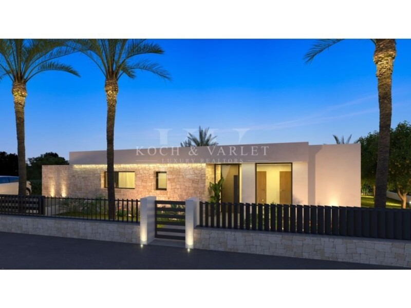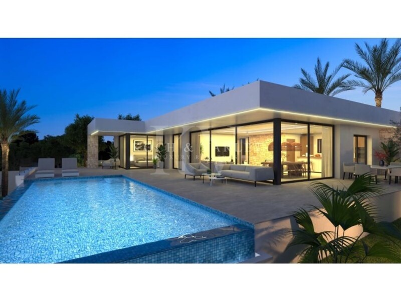 Villa Tangelo is the project of a charming villa located in the residential area of Corral de Calafat, in the beautiful coastal town of Denia, in the Valencian Community of Spain. This residential area is known for being a serene and peaceful place, ideal for those seeking a tranquil environment away from the hustle and bustle of the city center, yet close to all the services and beaches of Denia. Surrounded by lush nature, this area offers a picturesque setting with stunning views and areas for walking and enjoying the outdoors, as well as proximity to some of Denia's most beautiful beaches, providing easy access to the sea and water activities. Villa Tangelo is an elegant villa of 259 m² located on a plot of 1,118 m². Its modern design exceptionally merges with elegance, combining the dry stone of its walls with straight lines and white walls, large windows, and exterior woodwork lacquered in dark tones. The villa has a main floor and a semi-basement floor, distributed as follows: The charming entrance path will take us to a beautiful porch that leads to a spacious entrance hall, which guides us to the different areas of the main floor, distinguishing the rest area from the day area. We will have an elegant first bedroom with a built-in wardrobe and direct access to the charming terrace. There is also another suite-type bedroom with a private bathroom, built-in wardrobe, and access through a magnificent window to the terrace. The living-dining room, bathed in abundant natural light that enters through its large windows, occupies a privileged place in the center of the house, providing a warm and cozy atmosphere. The kitchen, fully equipped with a functional central island and a practical laundry room, completes this incredible space. Access to the semi-basement floor can be made either by the interior stairs or by the exterior stairs, which will lead us to another spacious entrance hall that takes us to another area where we will find two spacious suite-type bedrooms with private bathrooms, built-in wardrobes, and access to another beautiful terrace with a porch and uncovered area. On this floor, there is also a practical technical room. The modern design pool, with an interior staircase and overflow edge, and the well-maintained Mediterranean garden, with natural grass, trees, shrubs, and automatic irrigation, integrate smoothly, creating a visually stunning environment. In the various terrace areas, both covered and uncovered, we can create different environments according to our needs and desires. The large automatic exterior gate facilitates access to a parking area inside the plot for two cars. Villa Tangelo is not just a residence but a contemporary refuge that embraces natural beauty and modernity, offering an exceptional living experience in every detail. Villa Tangelo is a unique property presented by KOCH & VARLET LUXURY REALTORS S.L., your real estate agency specializing in luxury properties on the Costa Blanca in Spain, covering Denia, Javea, Moraira, Benissa, and Altea.