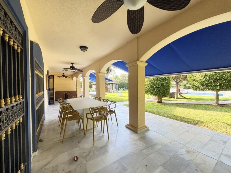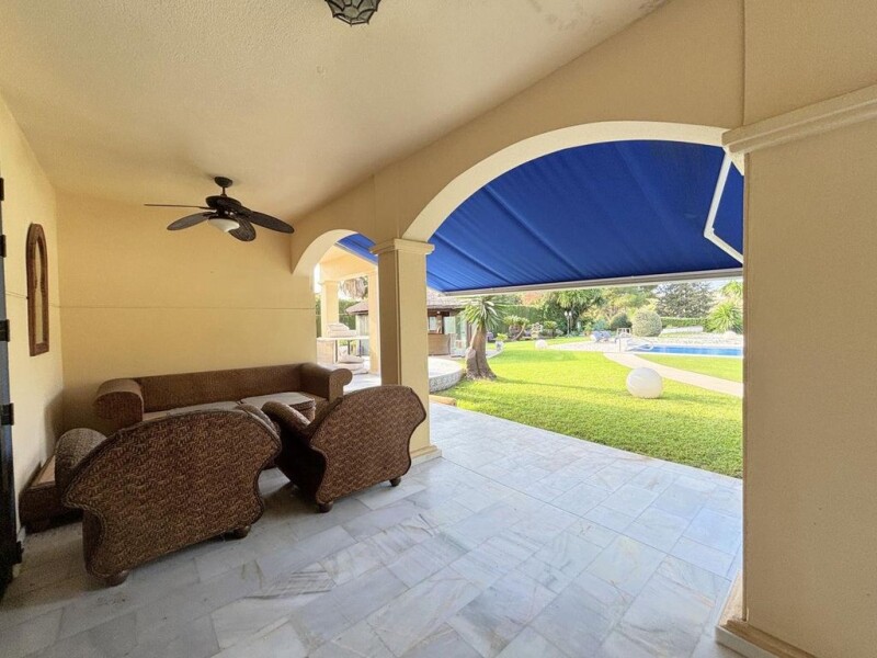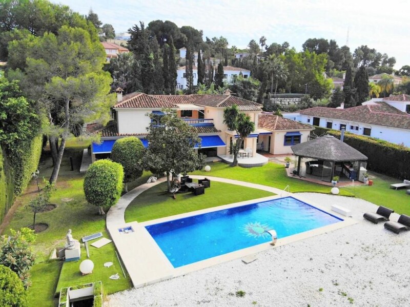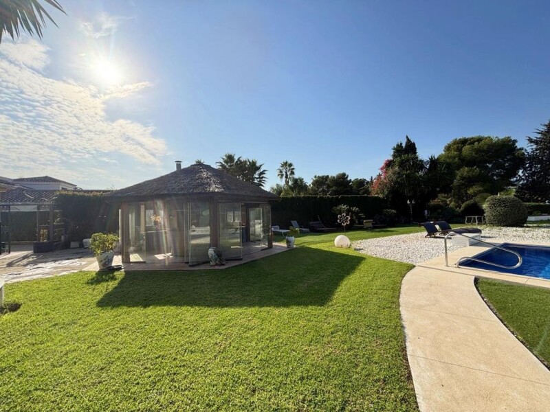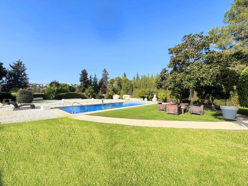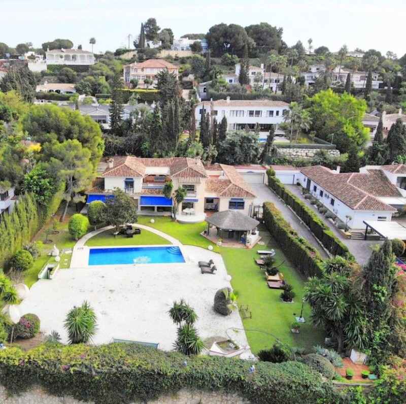 This stunning property is located in the exclusive area of El Paraíso Alto. With a built area of 490 m² and a plot size of 2,584 m², this luxurious home is spread over two levels and features 6 bedrooms and 6 bathrooms. Its southeast orientation ensures excellent natural light throughout the day. Upon entering through the main entrance of this distinguished residence, you are welcomed by a spacious foyer, which to the right provides access to a guest powder room and a cozy bedroom with an en-suite bathroom, ideal for guests. Straight ahead, a spectacular living room of generous proportions opens up to a large library, a bright terrace, and a spacious dining room, creating the perfect atmosphere for enjoying moments of leisure and tranquility. The living room also gives access to a wide terrace, which leads to the pool and a covered barbecue area, equipped with a table perfect for outdoor meals. From here, you can access the kitchen, which includes a convenient laundry room, a gym with a sauna, an additional bathroom, and another bedroom. On the upper floor, you will find the magnificent master suite, a true retreat with a walk-in closet, an en-suite bathroom, and a large private terrace offering breathtaking views. Continuing down the hall, there are two additional bedrooms that share a spacious en-suite bathroom, and a final bedroom with its own en-suite bathroom, providing total comfort and privacy for all family members. This exceptional property is characterized by its spaciousness, high-quality materials, and unbeatable location, offering a unique lifestyle in a private and sophisticated environment. The villa is situated in one of the most established and sought-after residential areas, next to the prestigious El Paraíso Golf Course. Its Andalusian-style architecture is complemented by the finest construction materials, creating an atmosphere of luxury and comfort. The design and layout of the spaces have been meticulously planned to optimize functionality and well-being. Regarding nearby services, there is an excellent selection of schools, including the Atalaya Bilingual School and the American Atlas School, both located within 5 kilometers. Furthermore, Puerto Banús is just a few minutes' drive away, offering a wide variety of high-end shops, restaurants, and services. The proximity to both the sea and the mountains adds another attractive feature, making this location truly exceptional. In conclusion, this property represents luxury and elegance in a unique setting. With its spacious rooms, superior quality finishes, and impeccable layout, this villa is the ideal choice for those seeking a luxury family residence in Estepona.