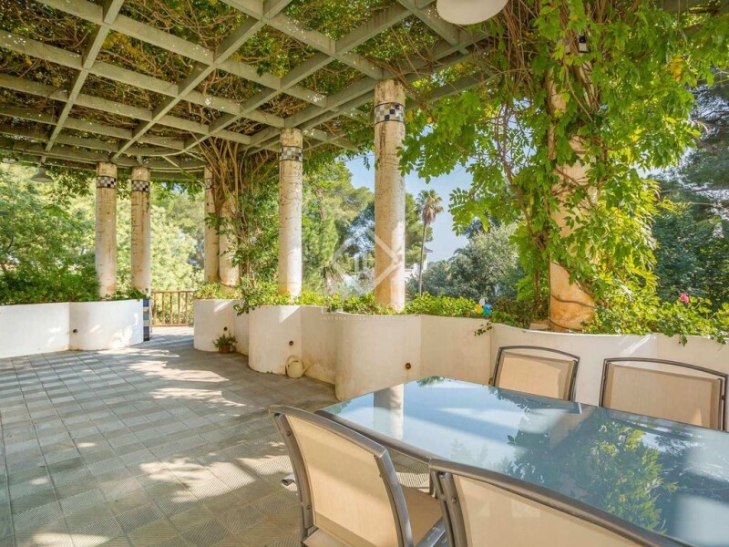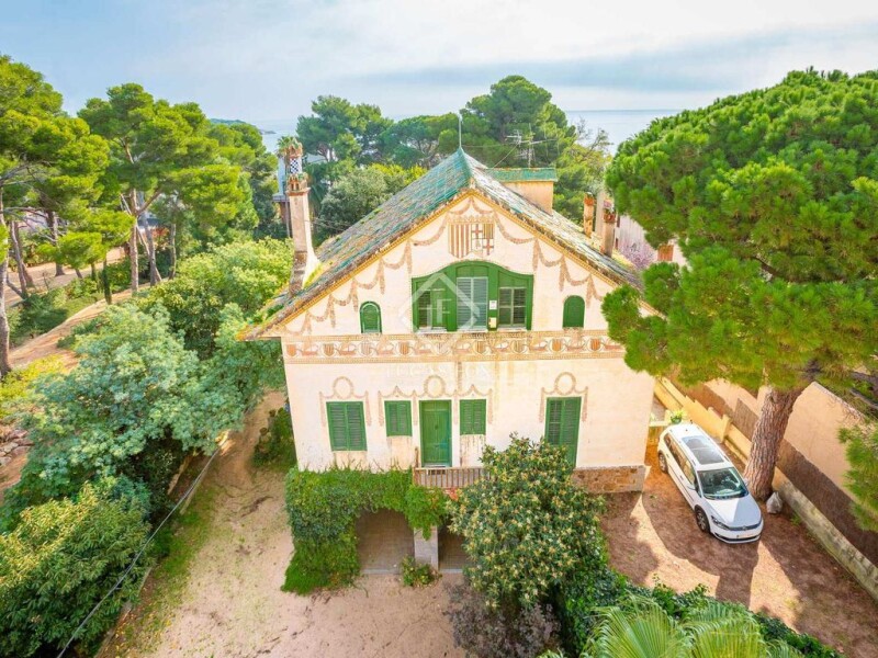 Modernista villa for sale on the seafront of Sant Pol beach, between Sant Feliu de Guixols and S'Agaro, just a few metres away from the luxury residential area, La Gavina. There are various gourmet restaurants next to the beach. The villa was built in the year 1908, designed by the famous Modernista architect Josep Goday, known also for his work with Puig I Cadafalch, another renowned architect in the Modernista period. The interior was updated in 2004, fully renovating the bathrooms and the kitchen as well as the gas installation. The terraces and porch were also restored in 2009. The property offers 6 bedrooms, 3 bathrooms, a kitchen, dining room and various living areas spread over 3 levels. It offers a total built surface area of 464 m² and part of the basement, currently used as a storage room, has potential to be renovated to become an independent dwelling. The property requires updating in parts and features stunning Modernista period features such as the charming mosaic floor tiles and stained glass window panes. It boasts views of the sea and the listed private garden which is flat and measures 2,175 m², also designed by Josep Goday and featuring its orginal landscaping with lime blossom trees, pine trees and many other Mediterranean plants and trees which are well maintained. The plot stretches out as far as the seafront and, from the garden level, there is a monumental stairway that leads down to the building's ground floor. A truly unique period gem in a highly privileged location on Sant Pol beachfront.