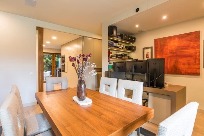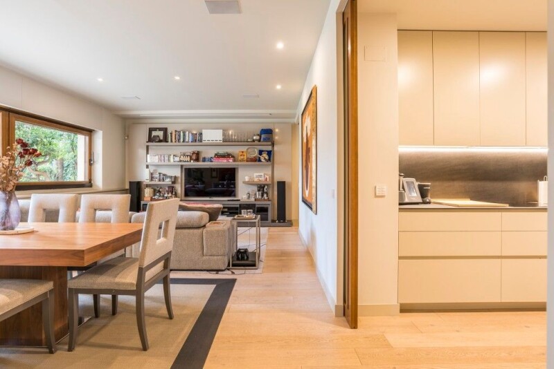 Beautiful two bedroom ground floor apartment with magnificent interior design reform, private garden, direct access to the swimming pool of the urbanisation, garage space and storage room located in a quiet and nice private urbanisation in Nueva España. We access the property through an entrance hall open to the living room. The spacious living-dining room has large windows with beautiful views to the garden and the community pool, projector and screen, custom made furniture and led lights. It also has an office area and large storage space under the windows. The kitchen is open to the living room with the possibility of being closed by a sliding door, it has large storage capacity with floor to ceiling cupboards, its high-end appliances and the office has direct access to the terrace-garden of the house. It has two large bedrooms, the master bedroom with large dressing room and en-suite bathroom with shower, bathtub and direct access to the terrace-garden. There is a second complete bathroom to serve the second bedroom and to be used as a guest toilet. The house is surrounded by a beautiful L-shaped garden terrace with great privacy, mature vegetation, outdoor shower, piped music and direct access to the swimming pool of the urbanization. The flat has excellent qualities and it is worth highlighting the luminosity in all the rooms, the great quality of its interior and exterior carpentries, as well as its good distribution of spaces. It also has home automation, piped music in the living room, bedrooms, bathrooms and terrace and direct access to the swimming pool of the complex. The heating is natural gas central heating with individual meter. The property also has a concierge who lives in the same property.