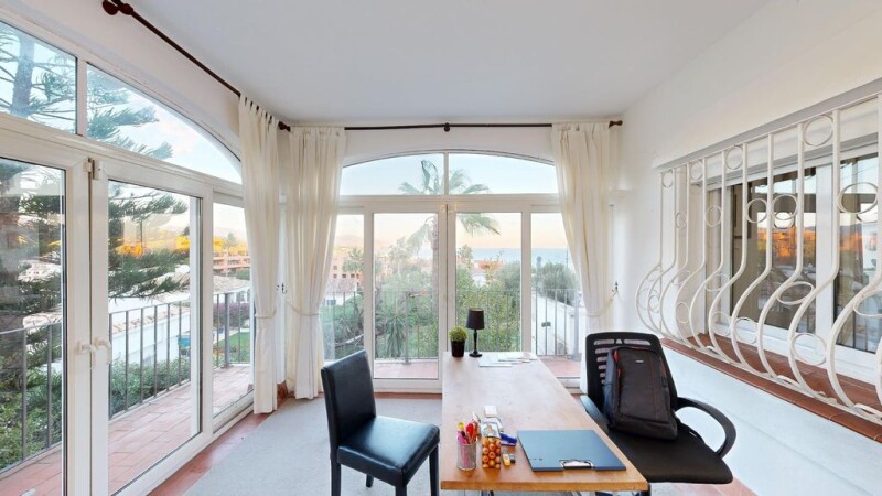 Serene Elegance: 3-Bedroom Villa with Breathtaking Sea Views in Estepona The location The property is located in Buenas Noches in Estepona. For golf enthusiasts, Club de Golf Finca Cortesin is conveniently situated just 2 kilometers away. Another nearby golf option is Estepona Golf, located at a distance of 2.3 kilometers. If you're a beach lover, Playa de la Galera is a short 0.5-kilometer distance away, offering a picturesque coastal experience. Additionally, Playa Bahia Dorada is located at a distance of 1.2 kilometers, providing another beautiful beach option in the vicinity. Malaga Airport is located 86 kilometers away from the specified location and can be reached in approximately 61 minutes by car. Gibraltar Airport is closer, at a distance of 36 kilometers, with an estimated travel time of 26 minutes. The property This detached villa boasts a charming design set against a backdrop of a beautiful garden. The residence is thoughtfully crafted on a single floor, providing convenient and accessible living. Featuring three bedrooms and two bathrooms, the villa offers a cozy and comfortable living space. For car enthusiasts or those requiring ample parking space, the property comes equipped with three garages, adding both convenience and security to this elegant home. Main floor The main floor of this residence is designed for both comfort and elegance. The living and dining rooms seamlessly blend into a cohesive space, offering a warm and inviting atmosphere. With easy access to the garden, residents can enjoy the outdoors and take in scenic sea views. The separate, fully furnished kitchen features a dining area, providing a delightful space for meals. The master bedroom, along with two regular bedrooms, shares a well-appointed bathroom, ensuring a private and functional living arrangement. Additionally, a guest bathroom adds convenience for both residents and visitors alike. This home harmoniously combines practicality with aesthetic appeal.