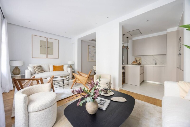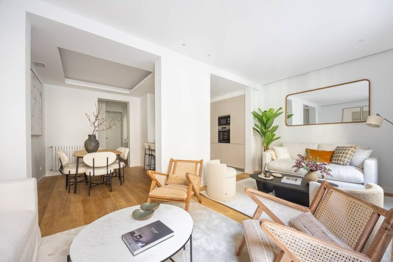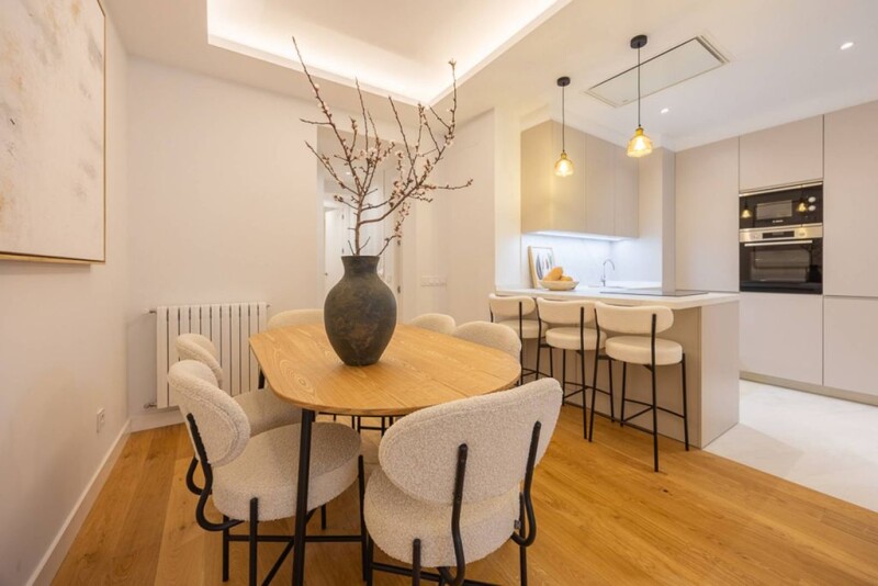 In the distinguished neighborhood of Los Jerónimos, one of the most exclusive areas of Madrid, this extraordinary home with unique views of Retiro Park is located. Situated on a privileged corner next to the emblematic Alfonso XII street, this property combines elegance, brightness, and sophisticated design in an unparalleled setting. Its classic facade and representative entrance reflect the stately character of the building, offering a residence of great prestige. The completely renovated and brand new home has 122 m² well distributed. The living area stands out for its two living rooms bathed in natural light thanks to the south-facing balconies, a separate dining room, and an open kitchen equipped with high-end appliances. In the sleeping area, there are three bedrooms, including a spectacular master suite with a dressing room and private bathroom. High-quality materials, such as natural oak flooring, provide warmth and distinction, while centralized air conditioning and individual heating ensure maximum comfort throughout the year. Located in one of the most coveted locations in the city, the property is just steps away from Retiro Park and very close to iconic landmarks such as the Prado Museum, the Botanical Garden, and the Puerta de Alcalá. Its exceptional location, along with its impeccable quality and layout, make this home a unique opportunity to enjoy a sophisticated life in the heart of Madrid.