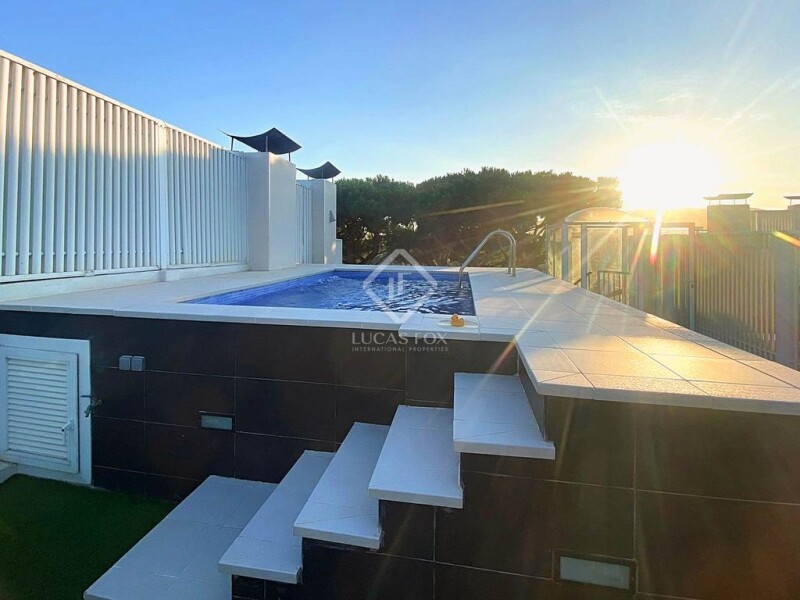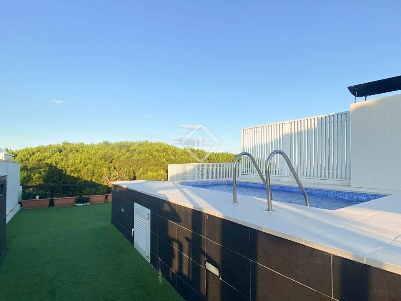 Discover the refuge of your dreams! Lucas Fox presents this spectacular, exquisitely renovated duplex penthouse located in the coveted area of La Pineda, Castelldefels. Located on the top floor of the building, this home not only offers breathtaking panoramic views, but also a luminosity that fills every corner with warmth and serenity, making it the perfect sanctuary for those who value tranquility and comfort. Attic Features Interior Spaces - Living-Dining Room: A generous and bright living-dining room that opens onto a charming 15 m² covered terrace. Imagine organising unforgettable evenings outdoors with your own barbecue, creating memorable moments with friends and family under the starry sky. - Kitchen: A modern and fully equipped kitchen, where functionality meets style, perfect for unleashing your culinary creativity. - Rooms: - Main: The main room is a true refuge, with a private bathroom that provides an intimate and cozy resting space. - Double and Single: One double room and one single room, ideal for hosting family or friends, guaranteeing privacy and comfort. - Bathrooms: In addition to the en-suite bathroom , you will enjoy a second bathroom that offers comfort and functionality for the rest of the home. Outdoor Spaces - Rooftop: The jewel in the crown is the magnificent 70 m² roof terrace, equipped with a solarium, artificial grass and a private pool. This is the dream place to relax, sunbathe and enjoy stunning sea views, creating your own paradise at home. Amenities and Amenities - Parking Space: Includes a private parking space, providing maximum comfort for you and your visitors. - Storage room: An extra storage space that will allow you to keep your home organized and free of clutter. Communal Areas Residents of this building can enjoy a wide range of communal areas that enrich each day: - Pool and Gardens: A natural oasis ideal for enjoying sunny days and relaxing in a serene environment. - Tennis Court: Perfect for sports lovers looking to stay active and have fun. - Children's Play Area: A safe and fun space for the little ones to play and have fun. - Multipurpose Room: A versatile place, ideal for holding meetings and social events. Note: Please note that the building does not have an elevator, an important detail to consider when falling in love with this stunning duplex penthouse. But there is foresight. This penthouse is a unique opportunity to live an exclusive lifestyle in a privileged location. With its fusion of luxury, comfort and spectacular views, it presents itself as one of the best options for those looking for a home on the beautiful Mediterranean coast. Don't miss this opportunity!.