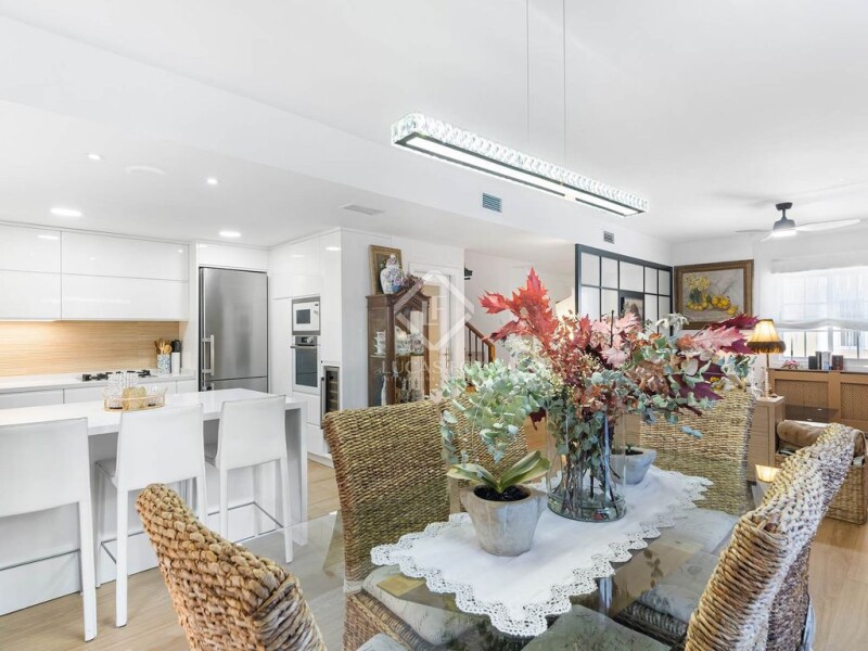 This exquisite property offers a thoughtfully designed layout across multiple levels. On the ground floor, we find a spacious living and dining area seamlessly connected to an open kitchen, complemented by a convenient guest bathroom. Step outside into your private garden, featuring multiple seating and dining areas along with a barbecue, perfect for outdoor entertaining. Additionally, a practical laundry room adds to the home’s functionality. Ascend to the first floor to discover two comfortable bedrooms sharing a well-appointed bathroom, alongside a stunning main suite complete with its own en-suite bathroom. Every bedroom features built-in wardrobes, ensuring ample storage space. The second floor boasts a luminous attic, offering a versatile space ideal for an extra bedroom, home office, or creative studio. Additional highlights include a three-car garage located in the basement, central gas heating and access to a refreshing swimming pool within the residence. Do not miss this opportunity to own a home that perfectly blends comfort, style, and functionality. Schedule your viewing today.
