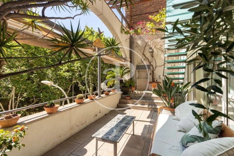 AProperties presents this exceptional townhouse, designed by the renowned Catalan architect Alfredo Arribas in 1988. This masterpiece, winner of the second FAD prize for architecture and interior design, combines elegance, comfort and a distinctive design that makes it a real treasure in the heart of the city. Upon entering, a spacious and welcoming foyer leads to an impressive 65 m² living and recreation room. This space, ideal for entertaining, is complemented by a guest bathroom, ensuring everyone's comfort. On the first floor, we also find a spacious garage with capacity for two vehicles, in addition to an outdoor parking space. Ascending a refined marble staircase, we reach the main floor of 110 m2. Here, a spacious living room with a relaxation area invites us to enjoy warm winter evenings in front of an elegant fireplace. The dining area is highlighted by a glass ceiling that floods the space with natural light, creating a bright and welcoming atmosphere. The large, separate kitchen is perfectly equipped to satisfy the needs of any gourmet. On this floor, there is also a double bedroom and two complete bathrooms: one with a shower and the other with a round bathtub and a well covered in colored mosaic. On the second floor, the sleeping area offers two single bedrooms and a generous master bedroom. This space, with restored Catalan vaulted ceilings, maintains its charm and tradition, while an exit to a 15 m² terrace offers unobstructed views of the garden of the National Theater. The finishing touch to this magnificent property is its elegant 35 sqm rooftop terrace with wooden ceiling, ideal for enjoying summer evenings under the stars. Every corner of this residence, with high-end finishes, has been designed with exquisite taste, offering a luxury lifestyle in an unbeatable location. Don't miss the opportunity to live in a home that perfectly combines classic elegance with all the modern comforts. Do not hesitate to contact us to arrange a visit!.