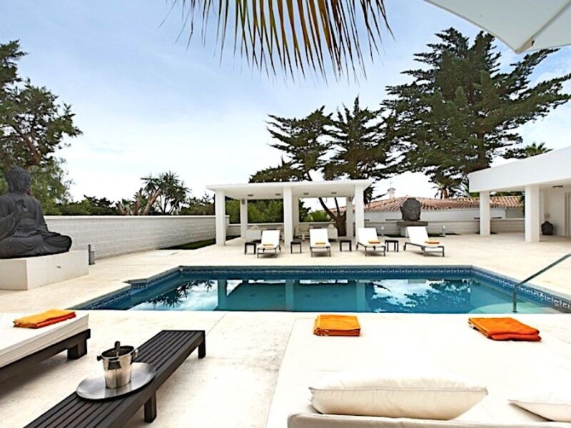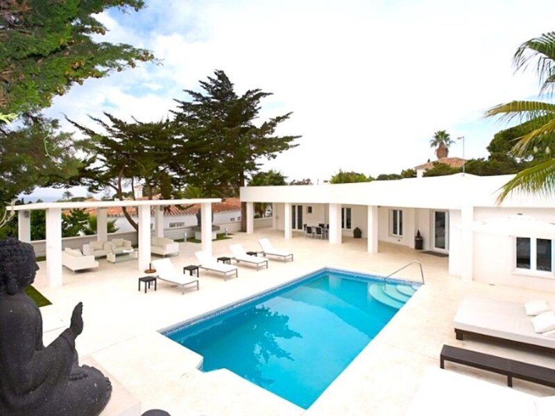 Located just 300 meters from the beach and near all amenities: alluring beach side villa in Marbesa, one of the most sought after urbanizations in Marbella East. Marbesa is a beautiful looking urbanization and consist of beautiful alleys with palm trees, nice beaches and mostly luxury villas. It is also well known for its fantastic beach restaurants. This contemporary design villa has 4 bedrooms and 4 bathrooms (2 en-suite). A large very bright living room with direct access to the fully fitted kitchen, terrace, beautiful garden and private swimming pool. It features a solarium of 60m2 with fantastic sea views!.