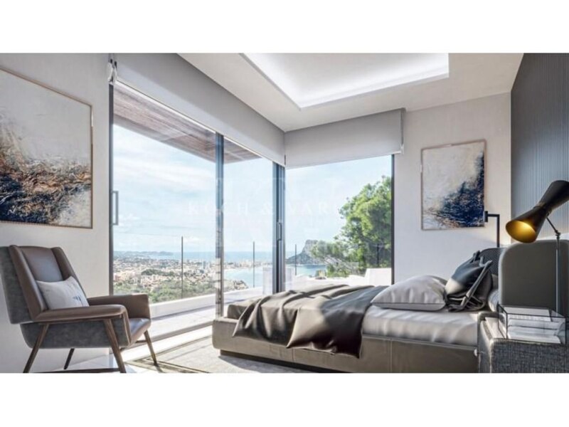 Fantastic project with building permit already granted, located in the heights of Calpe, with exceptional views of the infinite blue of the Mediterranean Sea, the bay of Calpe, the Penon de l'Ifach, and the Portet de Moraira. Composed of 3 floors and connected by an elevator and internal stairs, this magnificent high-luxury detached villa project will be built to the highest standards and using the latest technologies. On the ground floor, we have a large living-dining room, with beautiful bright spaces, open to panoramic views and the blue of the Mediterranean Sea. We have a large fully equipped functional kitchen open to the living room, a bathroom with shower and a double bedroom with its en-suite bathroom and integrated wardrobe. On this floor we have large outdoor terraces, surrounding a large infinity pool overlooking the breathtaking views. The terraces are full of wooded and flowered corners, and place to relax in the sun ideal for enjoying the view and the idyllic setting offered by this wonderful villa. Upstairs we find 3 large bedrooms, all with en-suite bathrooms and integrated wardrobes, including the Master bedroom. All rooms have access to a beautiful balcony. Saving the best for last, we have on the lower level, a garage for one car, a games room, the perfect place to set up a pool table or make it a private gym, and a bathroom with shower. The bathrooms will be of the PORCELANOSA brand, electric blinds in the bedrooms, living room dining room and kitchen, smart home system Domotics, ALTERMA by PANASONIC air conditioning system, underfloor heating, Airzone system, solar plate system for water hot, gunite swimming pool with automatic filtration system, landscaped garden with automatic irrigation system. A unique property presented by KOCH & VARLET LUXURY REALTORS S.L., your expert real estate agency in luxury properties on the Costa Blanca in Spain, Denia - Javea - Moraira - Benissa - Altea.