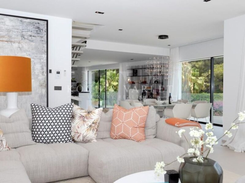 Villa Mar Azul, fantastic contemporary Villa, with views to the Mediterranean Sea located in the sought after residential area of Mar azul, close to Cala Barraca beach and its restaurants, in Javea. This exceptional villa with a fantastic sea view is one of a kind. Clear lines combined with careful details, its proximity to the beach and surprising extras make this luxury villa an oasis of paradise on the Costa Blanca. The view is exceptional and the blue of the Mediterranean Sea framed by the picturesque island of Portichol creating a breathtaking landscape. The villa is within walking distance of Cala La Barraca beach in Javea, which has 2 Mediterranean restaurants and a natural park. Its comfortable interiors are distributed over two floors, on the ground floor we find a large spacious and bright living-dining room, with integrated large-format bay windows opening onto the Mediterranean landscape, we have a custom-designed fitted kitchen with Bosch appliances, with a minimalist and contemporary style. On the same floor are guest toilets as well as a technical room which also serves as a laundry room; as well as a large double bedroom with fitted wardrobes and its adjoining bathroom. Outside are beautiful sun terraces, surrounding 2 infinity pools, one ideal for swimmers with waterfalls built into the wall; and the other ideal for sunbathing. We also find a beautiful outdoor kitchen with a barbecue and a fridge, to enjoy your dinners outside with friends and family, as well as a beautiful Mediterranean garden with mature and fruit trees, such as palm trees, olive trees, orange trees, lemon trees etc. The first floor, accessible by a floating staircase, consists of a unique master bedroom with views of the Mediterranean Sea, a dressing room with interior LED lighting, an open-design bathroom with a free-standing bathtub, ideal for escaping and relax in peace while enjoying the fabulous sea view. On the same level are two other double bedrooms, both with their en-suite bathrooms and fitted wardrobes. To relax with a fascinating view of the sea, the villa offers its roof terrace with a chill-out bar, the ideal place to enjoy the Spanish lifestyle. Many services including secure entrance door, underfloor heating, air conditioning, central heating, home automation, alarm system, laundry room and storage. - Furnitures of the villa are sold with the house, the value of the furniture is not included in the sale price, contact us for more information. - A unique property presented by KOCH & VARLET LUXURY REALTORS S.L., your expert real estate agency in luxury properties on the Costa Blanca in Spain, Denia - Javea - Moraira - Benissa - Altea.