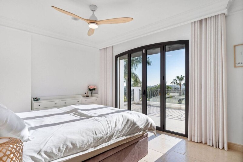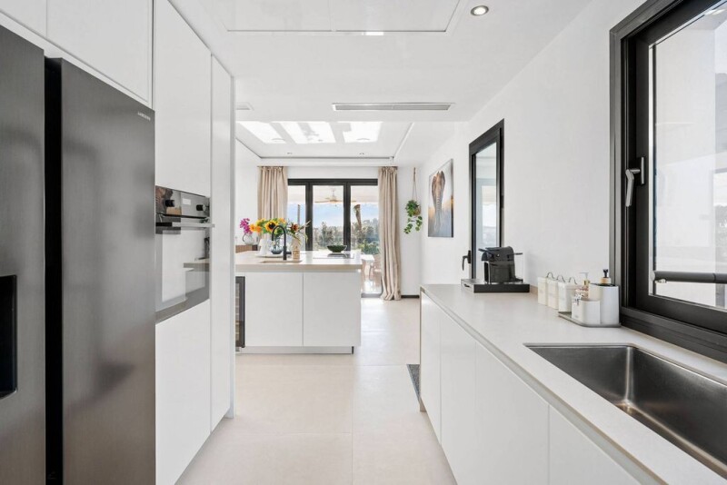 Frontline golf Villa with panoramic views in Los Naranjos, Nueva Andalucía Set directly on the 12th hole of the prestigious Los Naranjos Golf Course, this recently renovated villa offers a rare blend of comfort, elegance, and prime location in the heart of Nueva Andalucía. With open golf views and perfect sun orientation, this is a standout opportunity for those seeking a move-in-ready home with timeless appeal. The villa features an inviting layout across three levels. The main floor includes an open-plan kitchen with a secondary prep kitchen, connecting seamlessly to indoor and outdoor living areas. A bright living room, guest bedroom with en-suite bathroom, and guest WC complete this level. Upstairs, the master suite enjoys its own private terrace, accompanied by two additional en-suite bedrooms. On the lower level, the home offers a guest apartment with separate access, a spacious utility area, and an expansive garage partially converted into a gym. There's also a dedicated room ready to be transformed into a cinema or entertainment lounge. Outdoor features include a brand-new outdoor kitchen, BBQ zone, multiple seating and dining areas, and a beautifully landscaped garden with fruit trees and herbs. Located in a gated community with 24-hour security, and just minutes from top schools, golf, shops, and the beach, this villa offers excellent value in one of Marbella’s most desirable areas.
