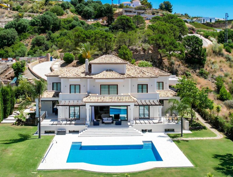 Fantastic private villa with panoramic sea and mountain views in Monte Mayor, Benahavis Beautiful villa for sale located in a gated and residential area of Monte Mayor, Benahavis. The villa is located on an elevated plot embedded in the mountain, enjoying privacy, tranquillity and fascinating panoramic views to the Mediterranean Sea and the mountains. The nearest beach is 7km away, all other amenities are within a 10 minute drive. The house is southwest facing, is distributed over three levels, has marble floors, a nice entrance hall, a living room with fireplace, a dining room, a kitchen and 6 bedrooms with 7 bathrooms, one of them is a guest toilet. In the spacious basement there are several entertainment areas, cinema, room with billiard table, extra room for multipurpose and a large garage for up to 3 cars. The villa has a beautiful well kept garden with a stunning swimming pool and direct sea and mountain views. This villa is a very good option for investment or as a second residence. Its location, privacy, security and tranquillity make it a very pleasant place to live with the whole family. The main services such as supermarkets, shops, banks, pharmacies, schools, medical and sport centres are only 10 minutes away by car. The famous Puerto Banus with beautiful beaches, natural coves, luxury cars, yachts and shopping centres is 15 km away by car. The centre of Marbella is 22 km away and the international airport of Malaga is 74 km away.