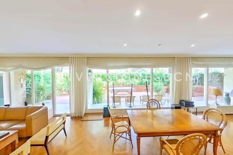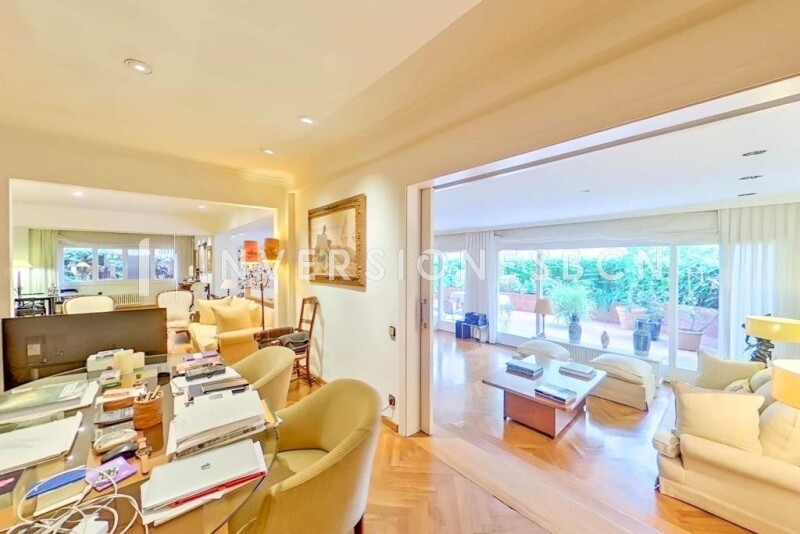 INVERSIONES GRUP REAL ESTATE BOUTIQUE PRESENTS~this wonderful 590m2 apartment in Sarria Sant-Gervasi~~The apartment is in the quiet and exclusive area of Sant Gervasi, with 590m² of living space and 370m² of terrace-garden that surrounds it. The apartment is completely exterior and faces all four winds, enjoying natural light in all its rooms. It is bright and very quiet.~~The building is just a few minutes from the train station. Different bus lines around, and restaurants and shops nearby. A doorman works all day and also an alarm inside the apartment and outside the terrace.~~The apartment has a hall that leads us to a large living-dining room with large windows that give access to a magnificent garden, ideal for enjoying special moments with family and friends. In another dining room and a private living room with a fireplace overlooking the garden. There is a library next door.~~The kitchen is spacious and fully equipped.~~It has five large bedrooms with fitted wardrobes, a dressing room, two bedrooms for the staff, three bathrooms, two toilets, an ironing room and a laundry room. The rooms are air conditioned and have gas heating.~~FEATURES OF THE APARTMENT [amp;] ESTATE~1 grand living room, divided into 4 rooms, with access to the garden~· 5 double bedrooms, spacious and exterior, and with access to the garden from the main room~· 2 staff rooms~· 1 terrace that surrounds the entire property~· 5 bathrooms (3 bathrooms and 2 toilets)~· 1 dressing room~· 1 library~· 1 shed~· 7 parking spaces (3 for cars and 4 for motorcycles)~· 1 storage room~· 1 chimney works well~~This property is in an excellent area and close to all services, this apartment is the perfect place to live in this magnificent city..~~Do not hesitate to contact us to discover all the possibilities that this apartment has to offer! You can call or WhatsApp Daniel directly at six five six six one four one one four.