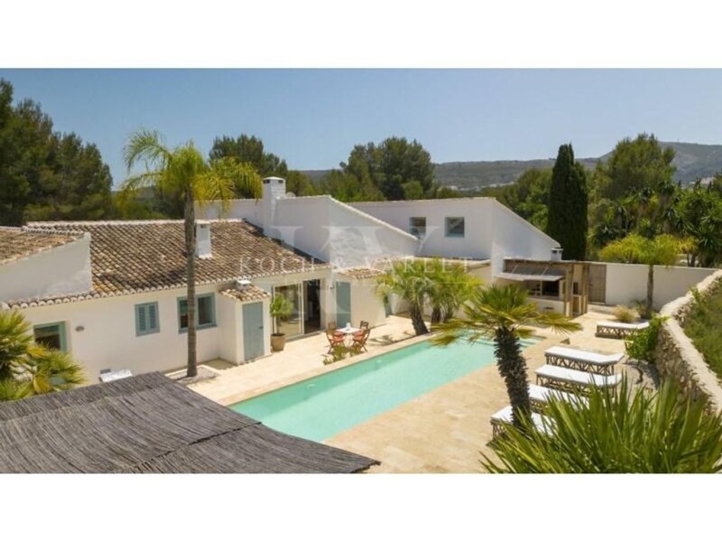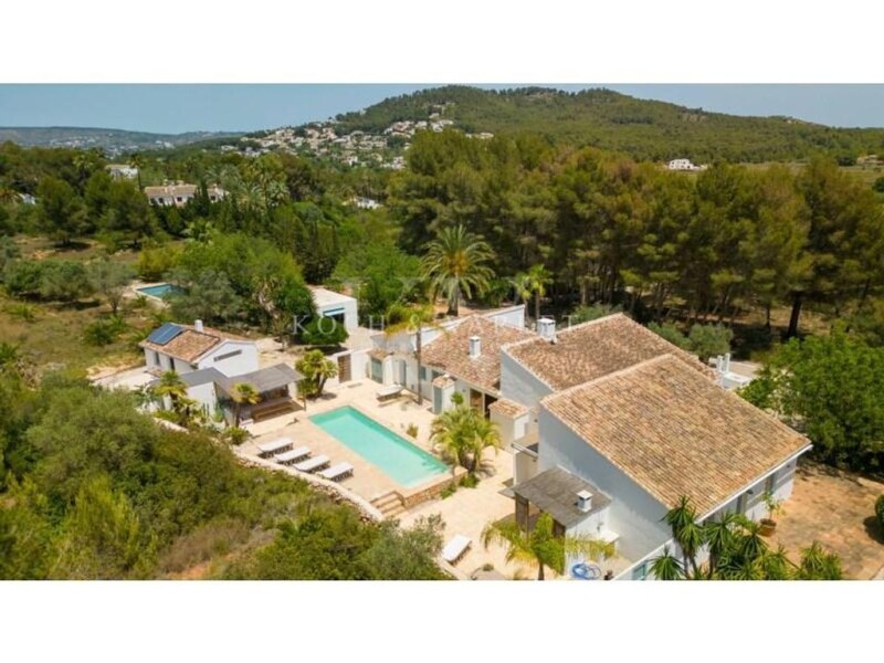 Nestled in the peaceful residential area of La LLuca, this magnificent Ibiza-style villa stands proudly just minutes from the sandy El Arenal beach, popular restaurants, amenities like supermarkets, and the prestigious Lady Elisabeth LAUDE school. It's also situated close to Javea's golf course, promising a life of luxury and leisure. This property is much more than just a house. It's an invitation to dream. Recently renovated with authentic Ibiza style, it showcases architectural features that make it a rare gem. The expansive 9,800m2 plot offers not only unmatched privacy but also a haven of peace and tranquility. Here, the murmur of nature and the gentle breeze pull you away from daily hustle and bustle. The main villa unfolds through a large covered terrace leading to an open kitchen equipped with top-of-the-line SMEG appliances. The immense living room with a fireplace and reading area is a true cocoon, with its Ibiza touches, such as terracotta floors, rounded walls, and exposed wooden beams. It features four spacious bedrooms, each with its private bathroom, complemented by a guest toilet. The outdoors doesn't disappoint: a main terrace hosts a sublime pool, surrounded by a relaxation area and a summer kitchen, all harmoniously integrated with natural stone walls and materials like wood. The property also boasts two guest houses. One, located on the opposite side of the plot for total privacy, has its own pool, kitchen, living room, and three bedrooms. The other, closer to the main house, is a charming loft with one bedroom, ideal for a caretaker or guests. Built in 1974, the villa has been meticulously maintained and modernized, merging old-world charm with modern comforts like central heating and air conditioning. It also offers a closed garage, extensive outdoor parking space, and an automatic irrigation system for the garden. In short, this is an exceptional property, ready to welcome its new owners, in a peaceful yet never isolated setting, close to all amenities. A real gem on the Costa Blanca.