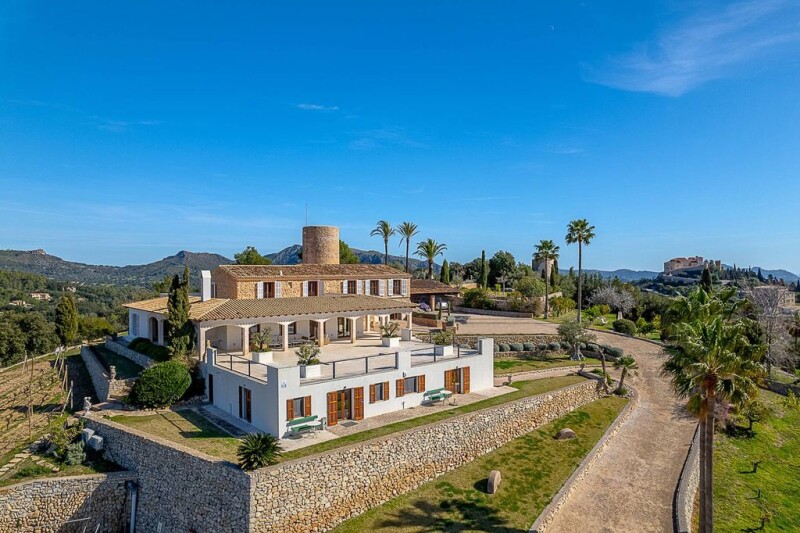 This impressive property in Artà, Mallorca, presents a unique opportunity for those seeking a refined residence in a Mediterranean setting. The estate includes a main house, a guest house, and an apartment within a historic mill tower, perfectly renovated in 2006. Unobstructed views of the mountains and the picturesque village of Artà enhance its unparalleled charm. Spread over two floors, the property boasts six spacious bedrooms and six full bathrooms, in addition to an extra guest toilet. Marble and microcement floors add a touch of elegance and modernity. The house is equipped with Bosch and Siemens appliances and features a pool, a carport for two cars, additional outdoor parking for two more vehicles, and a charming garden. Climalit wooden windows, exposed beams, a fireplace, an alarm system, and central gas heating with radiators ensure comfort and security. Located in the peaceful and beautiful area of Artà, this property offers a sanctuary of tranquility, with easy access to local amenities and the island’s attractions. The combination of Mediterranean style, breathtaking views, and modern features make this house a gem in the heart of Mallorca.