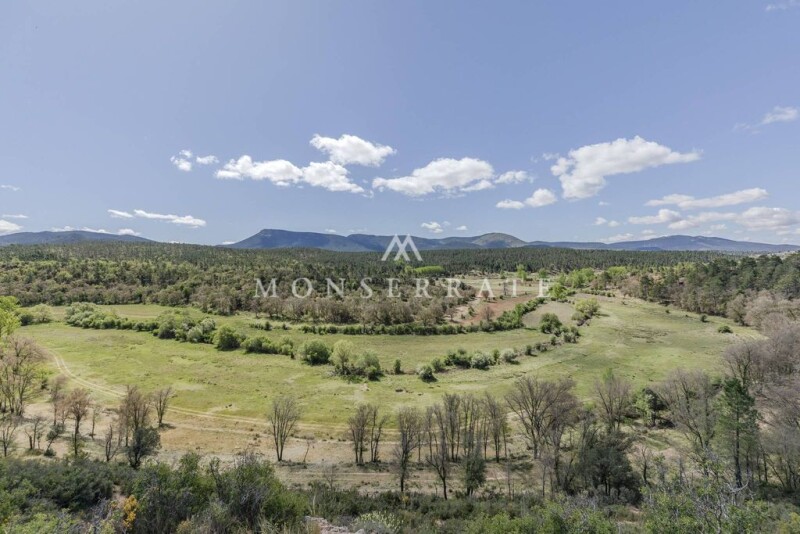 Monserrate PHA presents a real gem and opportunity in the select market of recreational and hunting estates, in the incomparable Serranía de Cuenca. This is an exclusive property that has 620 hectares of land, of which 550 are protected by a 2 m high fence with 11 gates. Within these 550 hectares, in the private hunting reserve, there are 360 animals of different species, including 220 deer, 120 wild boar, 30 mouflons and 30 roe deer. The main house and the guest annex have more than 1,200 m² built, divided into 3 areas, with 9 double bedrooms, 10 bathrooms, 2 large and bright living rooms with fireplace, a large terrace and a 15x5 m indoor pool. One of the double rooms, measuring 100 m², is located on the upper floor and has a terrace, jacuzzi, living room and fireplace. The guest annex has a living room, bathroom, kitchen and 2 bedrooms. Among its qualities, we highlight the exterior carpentry made of aluminium with thermal break and double laminated safety glass, interior carpentry made of varnished wood, heating installation with aluminium radiators and telephone connection, as well as internet. Two stone masonry walls run through the house, from side to side, giving it an avant-garde design, within contemporary architecture. Indoor and outdoor dining rooms with multiple windows with charming views of the pine and oak forests, prepared to enjoy in privacy, as well as with a large number of guests. The house is supplied with a 16,000 litre/hour well, in addition to a 1,000 litre water tank, two independent electric groups with batteries, two 1,000 litre petrol tanks each and 25 photovoltaic panels. In addition, a river cuts the property in half with a dam in a natural meadow. 150 m from the house we find the large paddle tennis court with lighting, 300 m away a 500 m² shed for storage, whether, crops, meat (freezing), machinery, vehicles, and in which there is also a work room with bathroom and basketball facilities. On its roof are the photovoltaic panels. 350 m from the house, there is the stable for 6 horses, the kennel for 5 dogs and a chicken coop, with 9 chickens currently. The farm is located in the municipalities of Garaballa, Landete and Talayuelas, 115 km from Valencia and 260 km from Madrid. It is important to emphasize that, per day, there are 4 trains (AVE) that take 1.5 hours from Madrid to Requena/Utiel, and 0.5 hours from Valencia. The aforementioned station is 40 km from the house. The estate's guard performs the comfortable task of collecting guests. Enjoying more than 600 hectares of landscapes on your property where you can enjoy magical corners and practice hobbies in permanent contact with nature, resting in the spacious house and its facilities with total privacy, organizing hunts on an estate with these specifications and having its own natural resources so close to Valencia and Madrid, are qualities very difficult to find in a recreational real estate asset. We offer you the opportunity to acquire this magical estate. Contact us and we will be happy to assist you.
