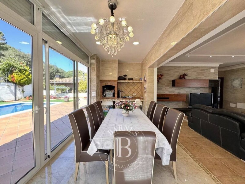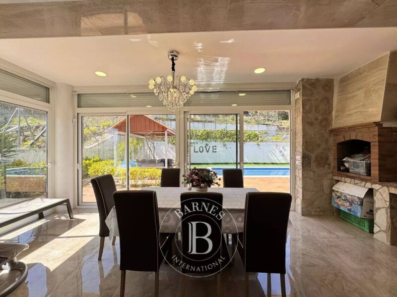 BARNES Maresme presents this wonderful property located in the center of Argentona, 10 minutes from the beach and 30 minutes from Barcelona. On a 992 m² plot, this property offers 360º views of the mountains and the village. On the ground floor, we find two large double bedrooms, a full bathroom, and a large bedroom with an en-suite bathroom. Continuing to the main floor, we find the immense living-dining room with a functional fireplace, access to a large terrace with panoramic views and the garden, where we find the pool, the chill-out area, and a zone with fruit trees. There is a large office-style kitchen with a pantry, a guest toilet, and a master bedroom with a bathroom and walk-in closet completing this floor. The basement is divided into a large garage for 3 cars, a games room, a storage room, a cinema, a bathroom, and a minibar. Undoubtedly, the best option for families who want to live close to the center without giving up spacious areas, views, and comfort.