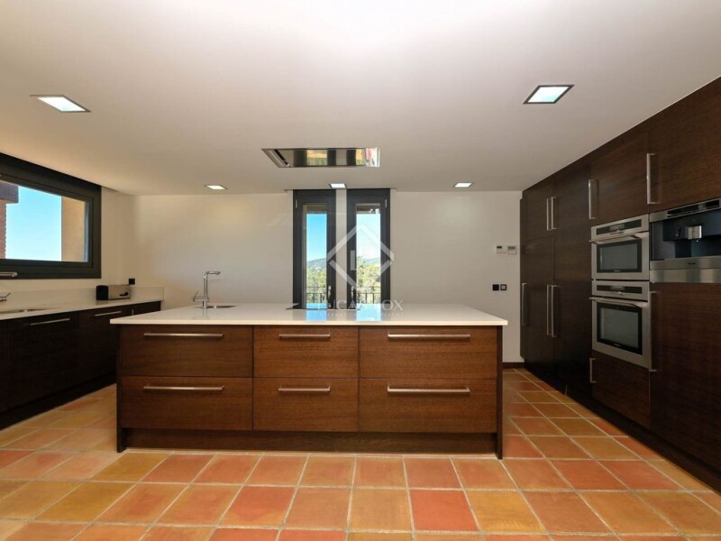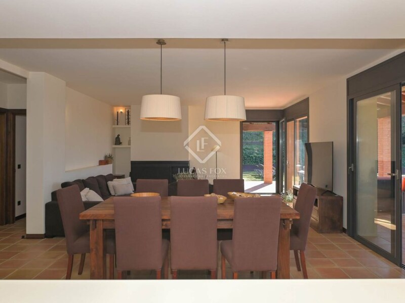 Lucas Fox is pleased to present this exceptional rustic-style villa , located in Romanyà de la Selva, an exclusive and peaceful area of Santa Cristina d'Aro. This region, known for its stunning natural surroundings and spectacular views, enjoys protected urban planning, providing greater privacy and exclusivity. Just a 15-minute car away are some of the most beautiful beaches and coves on the Costa Brava. This magnificent property sits on a sunny 2,881 m² plot and offers stunning panoramic mountain views. Its charming garden and saline pool are spread over two levels. With a southwest orientation, the villa enjoys natural light throughout the day and spectacular sunsets. The property consists of the main villa and a guest house, both with the same rustic style and unparalleled views. On the main floor , the day area is presented in a spacious and welcoming open-plan space, with a living room with a fireplace, a dining room , and a kitchen. It offers spectacular views and direct access to a large porch with a summer dining room , a chill-out area, a barbecue, and a level garden . The kitchen, with a central island, is fully equipped. On this same floor, there are two double bedrooms with built-in wardrobes, one of them with access to the garden, and a full bathroom . The first floor is dedicated exclusively to the luxurious main bedroom, which features a fireplace, dressing area , and study, as well as a balcony with panoramic mountain views. An elegant private bathroom with a shower, bathtub, and unbeatable views completes this floor. On the basement floor , there's a large garage with space for several vehicles, a gym with a Jacuzzi, a utility room , and a machine room. There's also a staff apartment with a living room, kitchen, and full bathroom . The exterior of the property offers an idyllic garden with various chill-out areas , a varied selection of fruit trees, and a spectacular saltwater pool. The guest house currently consists of a spacious double bedroom and a full bathroom , with the possibility of expanding its living space. The villa, built in 2008, stands out for its use of fine materials such as solid wood and for its high-quality finishes, including underfloor heating floors and porch, central air conditioning with heat pump, security shutters, and a water softener. It is also equipped for the installation of a lift. The property offers a unique level of privacy and tranquility, surrounded by nature and enjoying panoramic mountain views. It is, without a doubt, a unique residence in a privileged setting, close to the town center and the most impressive beaches of the Costa Brava. For more information or to arrange a viewing, please do not hesitate to contact us.