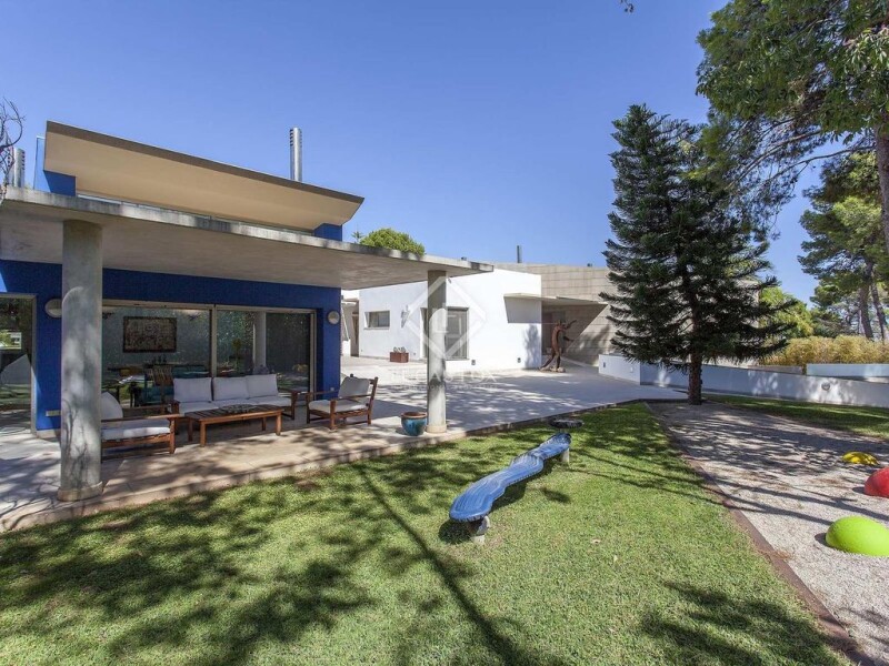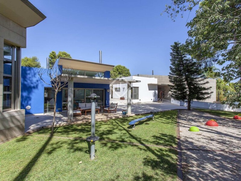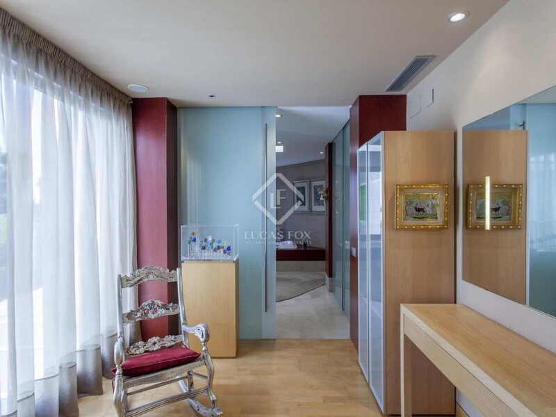 The villa is located on a 2,367 m² plot and consists of two homes: the main one and the guest house. Both homes are distributed on a single floor and have a total area of 937 m². At the entrance to the main property , we find a spacious and bright hall that leads us to the right to the main bedroom and the living-dining room. Towards the left, the hall leads us to the kitchen and another double bedroom . The living-dining room has large doors and windows that offer views and access to the garden areas , the summer dining room and the chill-out area. Here, the presence of an imposing crystal chandelier and warm furniture stands out, giving it a homely touch. From the dining room, stairs lead us to a bright study. From the living room, you can access the kitchen without having to go through the hall. The main bedroom consists of a hall, a room transformed into a magnificent dressing room and a full bathroom with a shower and a whirlpool bathtub. At the back of the bedroom, there are doors access to the terrace and garden. Just before the entrance to the main bedroom, stairs lead us to the spa area that houses a splendid heated pool with a hydromassage fountain, a full bathroom and a massage and treatment area. The pool area can be opened to make it exterior. The southern area of the main house consists of a guest bathroom, a kitchen and another double bedroom with a private bathroom and access to the garden. The large kitchen is equipped with an oven, microwave, refrigerator and dishwasher and has large benches and a table with chairs. From the terrace, you access the exterior area of the house. It has a dumbwaiter that leads to the service area. Adjacent to the kitchen, stairs lead us to the service area and garage. This area consists of a laundry area with a washing machine, dryer and an additional kitchen, a pantry, a wine cellar and a full bathroom . From a door, we access a closed garage with a capacity for approximately six vehicles. The guest house includes two double bedrooms, a full bathroom and a cozy living room with an equipped kitchen diner and access to the garden. The homes are equipped with underfloor heating and a ducted hot/cold air conditioning system to guarantee your comfort at any time of the year. Likewise, it has a security system connected to Seguritas and the internal system of day and night security guards in the development. Get in touch for more information.