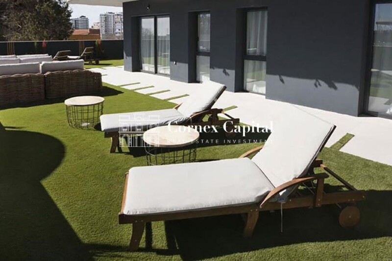 Magnificent new-build penthouse in Esplugues de Llobregat. Home with excellent finishes, functional and comfortable, with a surface area of 63sqm. It has 2 bedrooms and 2 bathrooms. Kitchen equipped with appliances. Penthouse with a 32sqm terrace plus a private solarium of 84sqm on the upper floor. With energy efficiency A, the most efficient. It belongs to an excellent building with reception service, concierge, gym, coworking, multipurpose rooms, large gardens with swimming pool and relaxation areas, children's playground, pickleball court, parking spaces and storage rooms. Quiet and family-friendly residential environment, with all kinds of services, shops and green areas. IMMEDIATE DELIVERY Optional parking space for €29,000.