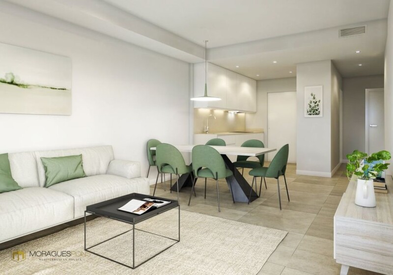 The TimeLess Residential is currently under construction and is scheduled for key handover in December 2026. The structural qualities inside the houses include flooring made of rectified stone-effect porcelain stoneware throughout the house, exterior joinery made of lacquered aluminium with thermal bridge interruption. Motorised aluminium blinds in the living rooms and bedrooms. Reinforced entrance door. Kitchen units in white laminate with concealed handle, upper and lower units, aluminium skirting board, worktop and front in compact quartz. Induction hob, multifunction oven, microwave, first brand integrated filter group and dishwasher. Reinforced and white lacquered access door to the flat as well as the interior doors, rectified tiles in white ceramic material or in a soft colour, mirror up to the ceiling on the skirting board. Composite resin washbasin. Composite resin showers, thermostatic taps and glass enclosure. Water heating by aerothermal heating, air conditioning with ducting, video intercom, Legrand home automation system. Hybrid system consisting of air supply via the façade and forced extraction with individual extractors for each flat. Please feel free to contact us for further information.