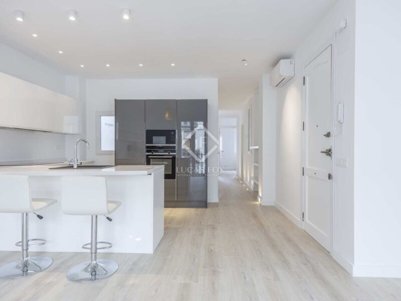 Lucas Fox presents this completely renovated, brand new apartment for sale in the heart of the Ruzafa neighbourhood , Valencia. Upon entering the apartment, we first find an open kitchen with all the spaces perfectly utilized and a large living-dining room with two windows with balconies overlooking the street, something very characteristic of this neighbourhood. The night area consists of three bright double bedrooms with built-in wardrobes from floor-to-ceiling. One of the bedrooms includes its private bathroom with a stylish built-in shower and sink. The other two bedrooms are also doubles. There is a toilet next to the dining room to serve guests. The second full bathroom comes with a shower. The materials, chosen with taste and care, are brand new, as are the appliances and all the facilities. The entire electrical installation and pipes have been changed. The property includes parquet floor , an American-style kitchen with all top brand appliances and installation of osmosis and a water filter. This is a fantastic opportunity for those looking for a property without needing renovation in the centre of Ruzafa.