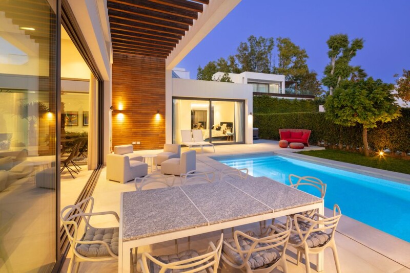 This completely remodeled house is located in the heart of the New Golden Mile, between Estepona and Marbella. offers a convenient and secluded location, where all the villas are to the south and West facing, with panoramic views towards a lush green forest: 50,000 m2 of protected nature zone. A beautiful and bright house, with sliding Cortizo glass walls that open to a large terrace ideal for entertaining, outdoor dining with BBQ and sparkling pool and Jacuzzi. The spacious main living room has a soaring ceiling height of 4.5m, providing light and elegance. throughout the property, open dining room with gourmet kitchen with center island, all areas facing the lush tropical gardens that provide privacy and a welcoming atmosphere. offers 3 double rooms on one floor plus a basement with an additional double room, warehouse, laundry room and machine room. The area is safe and very well connected, a short drive away. takes you to the Atalaya Golf and Country Club and the best international schools. within a short walking you have local supermarkets and a variety of shops, bars and restaurants, hairdressers, pharmacies, veterinarians and local services. The ideal family home for the discerning buyer.
