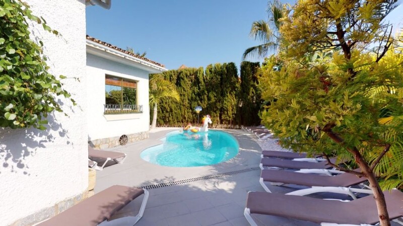 Villa Amapolas Charming 7 bedroom villa in Nueva Andalucia, Marbella Location Nueva Andalucia is the largest district of Marbella, with quick access to Puerto Banus. The golf courses are, by far, the key attractions, but so are the commercial centers (amongst them - Centro Plaza Shopping Center - with all the amenities anyone could look for - bars, restaurants, gym, car rentals, bank). This district is renowned for its international schools, but there are also sports clubs for children and many other leisure places that are kids friendly. The property is a 2 minutes drive to the trendy places of Nueva Andalucia (Breathe, La Sala...) and a 5 minutes drive to Puerto Banus, its luxury shops, its animated nightlife. Property This house has seven bedrooms. It is currently very often rented out short term for holiday makers, with a good yield. Decorated in a simple but tasteful manner, with great attention for details, this house has a countryside look. It's built on two floors and the space is very judiciously divided, so that every inch can be used to the fullest. Upper Ground Floor There is a beautiful, cozy living-room, with a fireplace, doubled by a place for dining. there are 4 bedrooms on this floor. Two of them share the same bathroom, the two others have each their own bathroom. The kitchen is outside under a porch, and is half enclosed. Lower Ground Floor The ground floor communicates with the lower ground floor through an exterior staircase. There is an eat-in kitchen here. There is a bedroom with a small bathroom on one side of the kitchen and there are two others, both of them served by one bathroom. Outdoors As said previously about the ground floor, there is a fully equipped summer kitchen on the porch of the house, with a cosy place for dining. Right in front of the house there is a swimming pool. On the other side of this peaceful house, there is yet another place for spending quality time with friends over a BBQ and to chill out. A Lovely patio, also, is of note. There are huge, mature palm trees in the courtyard and plenty of open space for kids to run. The luxurious vegetation ensures total privacy, plus this residence is situated in a peaceful neighborhood. Please, do not hesitate to take a look at the 360 degrees tour of the house! Also, kindly take a look at the floorplans for more information.