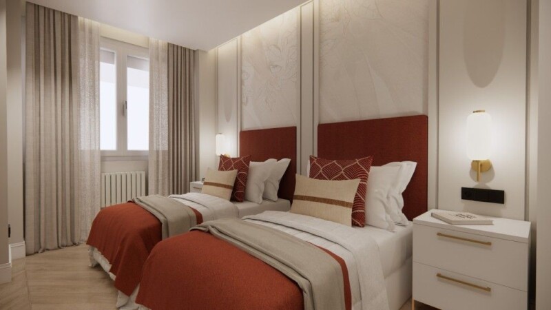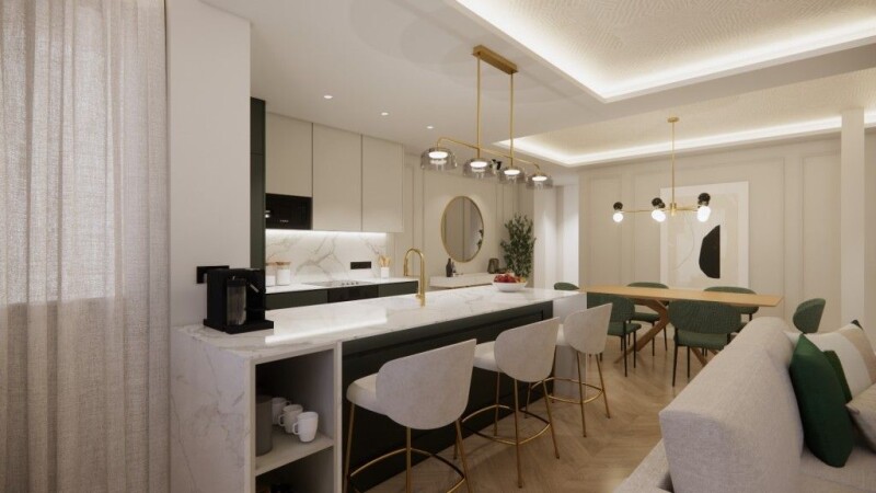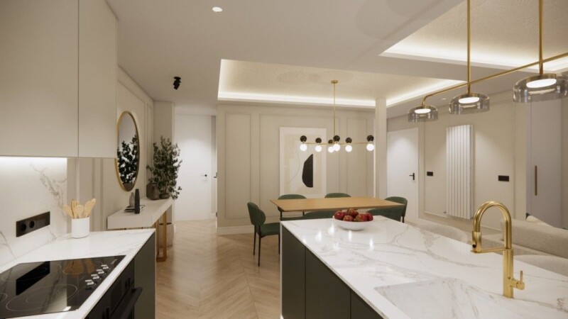 We are marketing the sale of this magnificent luxury two-bedroom flat, with a surface area of 133 square metres, renovated brand new, located in a property built in 1967 in the most sought-after area of the Salamanca-Lista neighbourhood. Located on the fourth floor of a building built in 1967, the property has great advantages that make it a very attractive option either as a family home or investment not only for its excellent location and the quality of the reform, but also for its location very close to Principe de Vergara and the headquarters of the I.E. This property is distributed in a reception area consisting of an entrance hall, a spacious living room with two areas, an open plan kitchen, fully fitted and equipped with high end appliances, the living room is equipped with two large windows facing a quiet and sunny courtyard that provide a magnificent natural light. In the sleeping area we have two spacious bedrooms. The master bedroom is a large suite with bathroom and a large wardrobe area. The other bedroom, also exterior, is a good size and has a large wardrobe. A full bathroom services this bedroom and also serves as a guest bathroom. It is worth mentioning the quality of the refurbishment carried out in which the best materials have been used with hot and cold air conditioning. Central heating, electrified blinds and a great thermal and acoustic insulation, also highlighting the generous entrance of light that this flat has, not only for its south orientation, but also for the height of its floor and its large windows. The property is sold furnished and decorated by a prestigious interior design studio.
