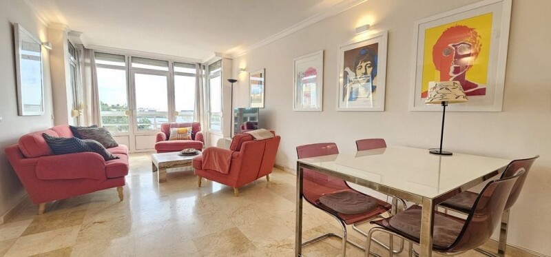 Second line beach apartment in Marbella Center. Located a few steps from the promenade of Marbella, on a high floor, this apartment with 2 bedrooms and 2 bathrooms offers an unbeatable location and a magnificent view of the sea, the mountain of La Concha and the old town. Spacious living room with a large window from which to enjoy the sea views, master bedroom with en suite bathroom, second double bedroom, second bathroom and fully fitted kitchen with separate laundry area. The apartment has air conditioning cold/heat. Live in the city center within walking distance of all services and amenities.