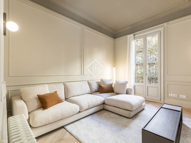 This impressive property is located in a very well-preserved period building on the prestigious Mallorca street, between Rambla Cataluña and Balmes. Its 175 m2 offer an elegant and contemporary design, combining the best of traditional architecture with modern comforts. Upon entering, a large entrance hall distributes the space into the two main areas of the house. To the left, we find a day area that houses a bright living room and a spacious dining room, both connected by an elegant arched wall that gives character to the environment. Thanks to its three balconies facing Mallorca Street, the property enjoys abundant natural light. The open kitchen is equipped with high-end appliances , in conjunction with the other rooms in the day area, which creates a harmonious atmosphere. It is completed with high-capacity tall cabinets and a large island with a cooking area and space for stools, ideal for day-to-day use and for entertaining guests. The entire day space occupies an area of more than 65 m2 . The night area consists of three suites, each with private bathrooms. The large bedrooms are designed to create an elegant and relaxed atmosphere, with restored original ceilings that add character and a touch of colour that gives personality to each of the spaces. The bathrooms feature a contemporary and minimalist layout , with a focus on functionality without sacrificing elegance. The selection of high-quality materials, such as natural oak herringbone parquet, provides a warm and sophisticated atmosphere throughout the property. As for the qualities, the property has a ducted air conditioning system and a radiator heating system that guarantees a pleasant temperature throughout the year. In addition, it has a facilities and laundry room area and a guest toilet for greater comfort. The building, in a classic style, is in a perfect condition, with a concierge service and two elevators for easy access to the property . Its privileged location in l'Eixample offers easy access to the city's main arteries, luxury shops, restaurants, and all the amenities that this emblematic area of Barcelona includes. Without a doubt, this is a unique opportunity to acquire a luxury property in one of the best locations in the city.
