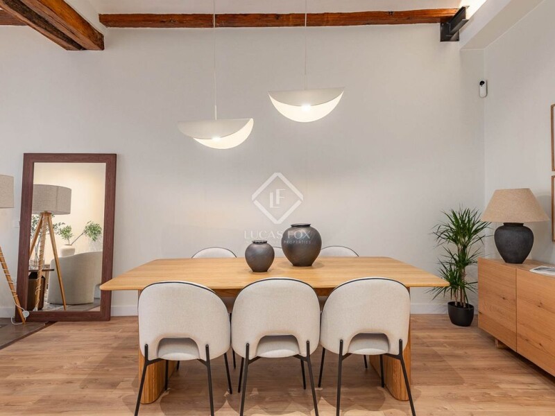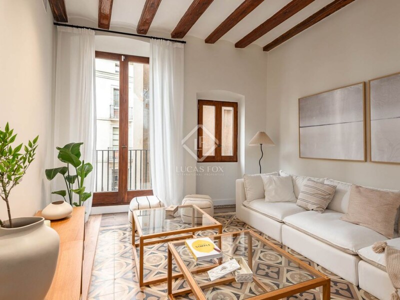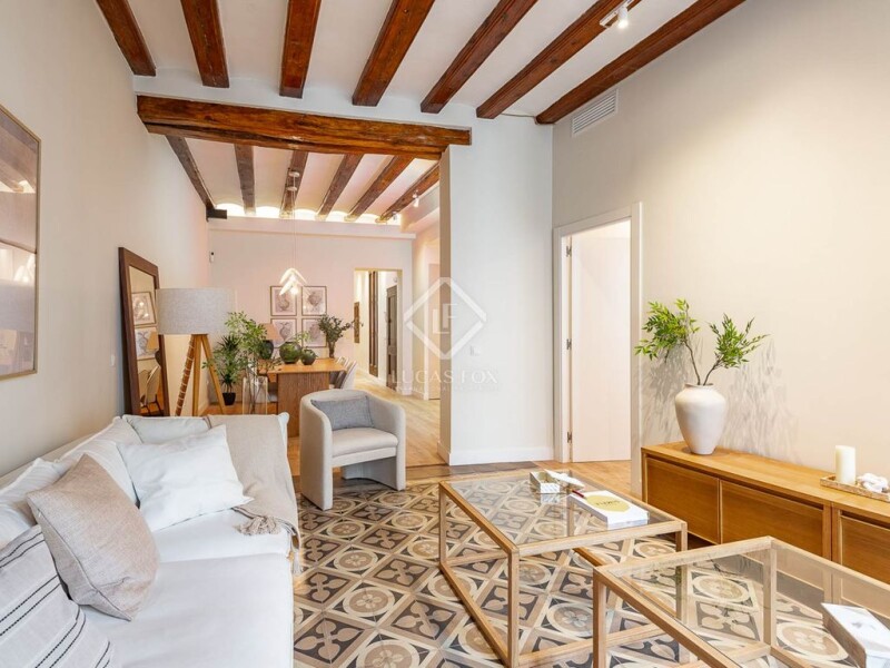 When every detail of a renovation is carefully considered, both in terms of quality and interior design, we end up with a property like the one we present below. This spectacular property is located in Barcelona's Born neighbourhood . Its central location is next to the Jaume I metro station and just a few minutes' walk from Plaça Catalunya, Ciutadella Park, and Joan de Borbó Avenue, which connects to Barcelona's beaches. It's located in a historic building dating back to 1855, although its four-occupant elevator is a notable feature, a rare feature in the neighbourhood. The well-preserved building houses this apartment for sale on the third floor . To access the property, we have two entrances: one from the communal staircase and another from the elevator. In terms of layout, we find a spacious entrance hall connected to the dining room and a living room to the left with access to a balcony and another exterior window. From the living room , we access the master bedroom, which includes a dressing room, en suite bathroom , and access to an exterior balcony. Next to the living room, there is a guest toilet, ideal for guests. Back in the dining room, to the right is a spacious, fully-equipped designer kitchen with a large island, making it an ideal space for entertaining. It has windows overlooking an courtyard that surrounds the property , providing natural light throughout. In the night area, we have a full bathroom , a single bedroom with a built-in wardrobe , and a second double bedroom with a large dressing room and access to a utility area. We highlight the restored wooden beams, the preservation of the hydraulic tile floors in most rooms, and the woodwork. All of this creates the perfect combination of classic and modern in the centre of the city. Don't hesitate to visit this property with Lucas Fox!.