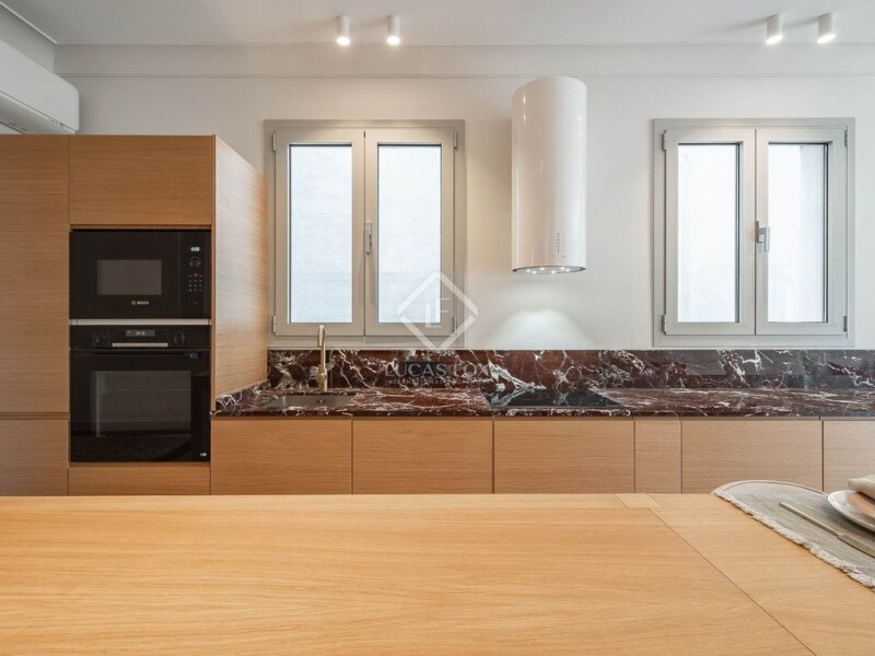 Located on the upper floor of a classic building, this apartment shows off its original character, inspired by classicism from the 1940s, masterfully combined with modern comforts. The southerly aspect day area is filled with natural light from late morning until late afternoon. It is composed of a 33m2 living room with an open kitchen and an study, separated from the living room by a sliding door. Both rooms face a pleasant block patio, which enjoys spaciousness and natural light. The kitchen, with oak style finishes and red wine-colored countertops, is fully equipped with top quality appliances . Next to the kitchen we find a guest toilet. Returning to the lobby we are approaching the night area, perfectly independent from the day area for maximum privacy. It includes three double bedrooms and two additional bathrooms, one en suite. This part of the apartment also offers a dressing room. The first room overlooks a light well, while two other rooms are completely exterior and occupy areas of 12 and 15m2. The en-suite room has a pleasant gallery. The property is equipped with state-of-the-art air conditioning and ducted heating. Double glazing ensures optimal energy efficiency. Just 4 minutes from Pl. de Francesc Macià, the building is surrounded by a wide range of amenities, shops and high-quality dining options. Stores selling organic products, restaurants and cafes for all tastes, gyms and co-working spaces, local and international schools. Enjoy quick access to the main roads, ensuring perfect communication with the Airport, the beaches of Costa Dorada and Costa Brava and other places of interest. A few steps from several subway and bus lines. A storage room is included in the building for exclusive use. Contact us now to arrange your visit!.