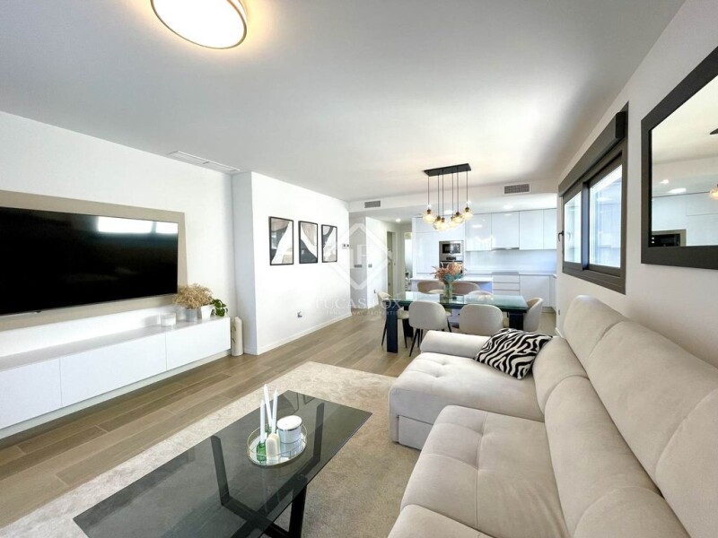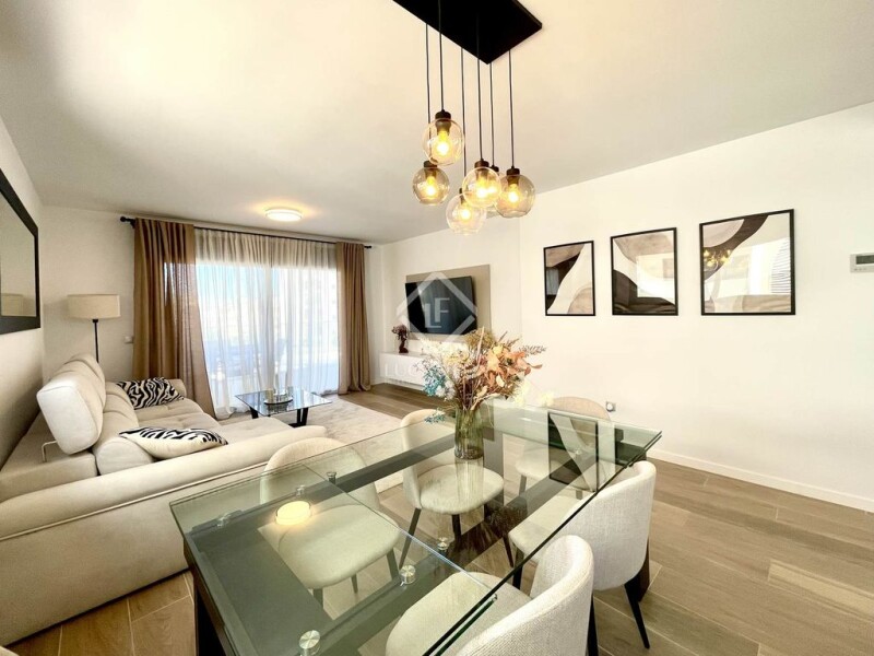 This stunning, nearly new three-bedroom corner apartment offers the ultimate in modern living, combining smart design, premium materials, and an abundance of natural light. Located in The Style by TM—the most desirable development in Alicante—this home is a perfect blend of comfort, elegance, and convenience. Inside, we find a thoughtfully designed layout with top-quality finishes and beautiful flooring. The open-plan kitchen is a sleek, contemporary masterpiece, featuring high-end Balay appliances, stylish white cabinetry, and a practical yet sophisticated design. The dining and living area is warm and inviting, bathed in natural light thanks to its privileged corner position. The apartment boasts three well-proportioned bedrooms, all with built-in wardrobes. The main suite is a true retreat, complete with a custom-designed en-suite bathroom featuring double sinks and elegant finishes. Step outside to the spacious 18 m² terrace, where you can enjoy panoramic views of the lush urbanization and the resort-style pool area—a perfect setting to relax or entertain. Additional features include underfloor heating, integrated air conditioning (hot & cold) via ducts, a private storage unit, and a parking space. Living in The Style by TM means access to exceptional facilities, including a large swimming pool, two jacuzzis, a paddle court, a children’s playground, lush green areas, a social club, and concierge service. Situated in the heart of Pau 5, the most sought-after neighbourhood in Alicante, you are just a 5-minute walk to the beach, 1 minute from a large supermarket, and 5 minutes from the tram, which takes you to Alicante centre in 20 minutes. The airport is only a 20-minute drive away. This is a rare opportunity to own a luxurious, move-in-ready home in Alicante’s most exclusive development. Please contact us to schedule your viewing today.