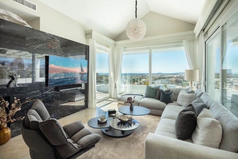 Enjoy breathtaking panoramic views of the sea, mountain and rock of Gibraltar.. yet only a short stroll to Puerto Banus, the beach and a variety of golf courses. South - west-facing modern villa with 3 bedrooms (all en-suite) and a guest toilet. The entire villa has underfloor heating, central AC, security glass windows, solid marble tiles, custom built kitchen; all designed to make your stay as effortless and elegant as possible. The home is located in the lower parts of Nueva Andalucia, only a short walk to great restaurants, the beach and golf courses. The residence has a private garage for 2 cars and a basement where you can set your imagination free; maybe create a spa, gym, games room, cinema, extra bedroom, wine cellar.. or any other “extra” you can imagine!.