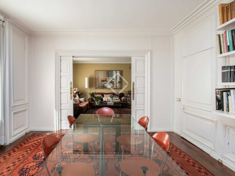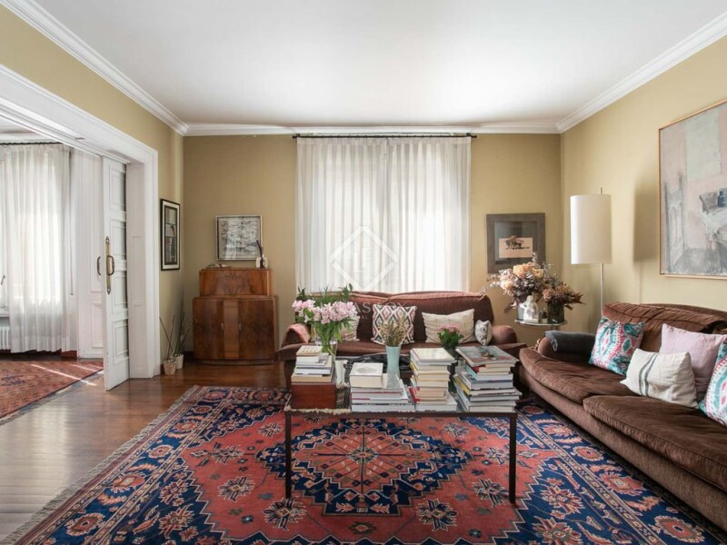 This apartment has two entrances, the main one and the service one. In addition, it is perfectly divided into two areas: the living area and the night area. Upon entering the front door, we find a spectacular hall that separates these two areas. To the right, we find a huge living area in two rooms and further on the dining room. Both the living room and the dining room benefit from abundant light from their windows, high ceilings and clear views. Continuing through the dining room, we arrive at the kitchen, fully equipped and with appliances by good brands. This area connects directly with the service area consisting of a bedroom with bathroom, pantry and gallery. This area can be accessed directly through the service door. The night area has a corridor that leads to the different rooms. First, an office and then we find the master suite with its own dressing room and bathroom, as well as a small balcony. Further on, there is a double bedroom with a bathroom and another bedroom that is currently used as an office. Finally, there is a bathroom that serves these last two rooms. All bedrooms are spacious and exterior facing, with abundant natural light. In addition, a large parking space for two cars is offered. Please contact us for more information.