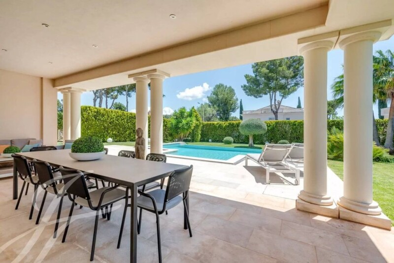 This spacious villa, built to the highest quality standards, is located on a southeast facing plot in a very sought after and quiet residential area. The elegant interior design of the ground floor includes the spacious entrance hall, the large living/dining room, in the middle of which a lovely glazed patio connects visibility to the ample kitchen with its adjacent utility room. Furthermore this floor offers a double bedroom with its own bathroom and a guest toilet. Up the natural stone stairs or by taking the lift you reach the first floor where you will find 2 double bedrooms, each with its own bathroom and the impressive master suite which stands out with a large dressing room, bathroom with bathtub and an extensive terrace. The spacious basement of this villa houses an immense garage with a minimum capacity for five cars, a wine cellar, an office, a TV room, a storage room and the machine room. A guest flat with separate entrance could be built here. The lift connects all floors for your convenience. The 3 prestigious golf courses, the exclusive Port Adriano and the yacht club of Santa Ponsa are only a few minutes away by car. Furthermore, numerous beaches and the town centre with shops, restaurants, banks, medical centres and various services. The exquisite outdoor area is designed for enjoyment and relaxation, with a low maintenance garden, a swimming pool and several spacious terraces ideal for entertaining and relaxation. This villa offers a perfect combination of luxury, comfort and privileged location, making it the ideal home for those seeking the best of Mediterranean living. Nova Santa Ponsa, a real hidden treasure in the southwest of Mallorca. This privileged area is a haven for those seeking an elegant lifestyle in natural surroundings. In Nova Santa Ponsa, one is immediately captivated by the idyllic surroundings. The magnificent high-end villas rise majestically, offering panoramic views of the sea and the surrounding lush vegetation. The heart of Nova Santa Ponsa beats in its impressive marina, Port Adriano. Designed by renowned architect Philippe Starck, this world-class harbour is home to exclusive luxury yachts. The crystal-clear beaches invite you to relax, enjoy water sports or enjoy a cocktail in one of the elegant beach bars. Golf lovers will feel like in paradise in Nova Santa Ponsa, as it has some of the most prestigious golf courses on the island. Nova Santa Ponsa offers a wide range of quality services such as fine dining restaurants, exclusive boutiques, luxury spas and excellent sports facilities. It is also strategically located close to other areas of interest, such as the historic city of Palma, where you can enjoy a variety of cultural, shopping and entertainment activities.