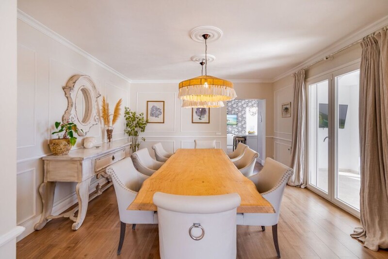 Elegant contemporary villa with private pool in Bel Air, Estepona This stunning luxury villa is located in the charming area of Cancelada, Estepona East. This villa offers ample space for a comfortable stay. The property features 4 bedrooms and 4 bathrooms, providing plenty of room for a large family or guests. As you enter the villa, you will be greeted by a private pool and garden, perfect for relaxing and enjoying the sunny weather. The villa also boasts private parking for your vehicles. Inside, the villa is designed with cosiness and comfort in mind. The fully furnished kitchen is equipped with top-of-the-line appliances and offers ample space for cooking and entertaining. The dining room and living room provide a spacious area for family gatherings and entertaining guests. Additional features of this villa include air conditioning, a storage room, an alarm system, and a laundry room. The villa also offers internet access and Wi-Fi, allowing you to stay connected at all times. The villa's private terrace and covered terrace provide the perfect setting for outdoor dining and relaxation. From the terrace, you can enjoy stunning views of the garden and pool. The glass doors throughout the villa allow for plenty of natural light and create a seamless connection between indoor and outdoor living spaces. This villa is in good condition and is located close to amenities, shops, and the town center. It is also conveniently situated near transport links, making it easy to explore the surrounding areas. With its luxurious features and prime location, this villa is the perfect choice for those seeking a high-end property in Cancelada, Estepona.